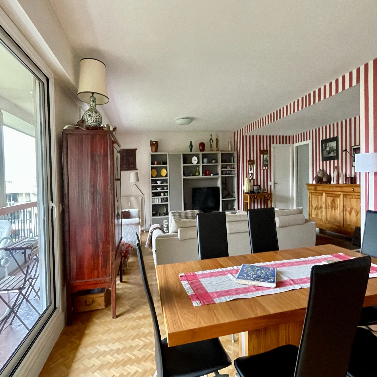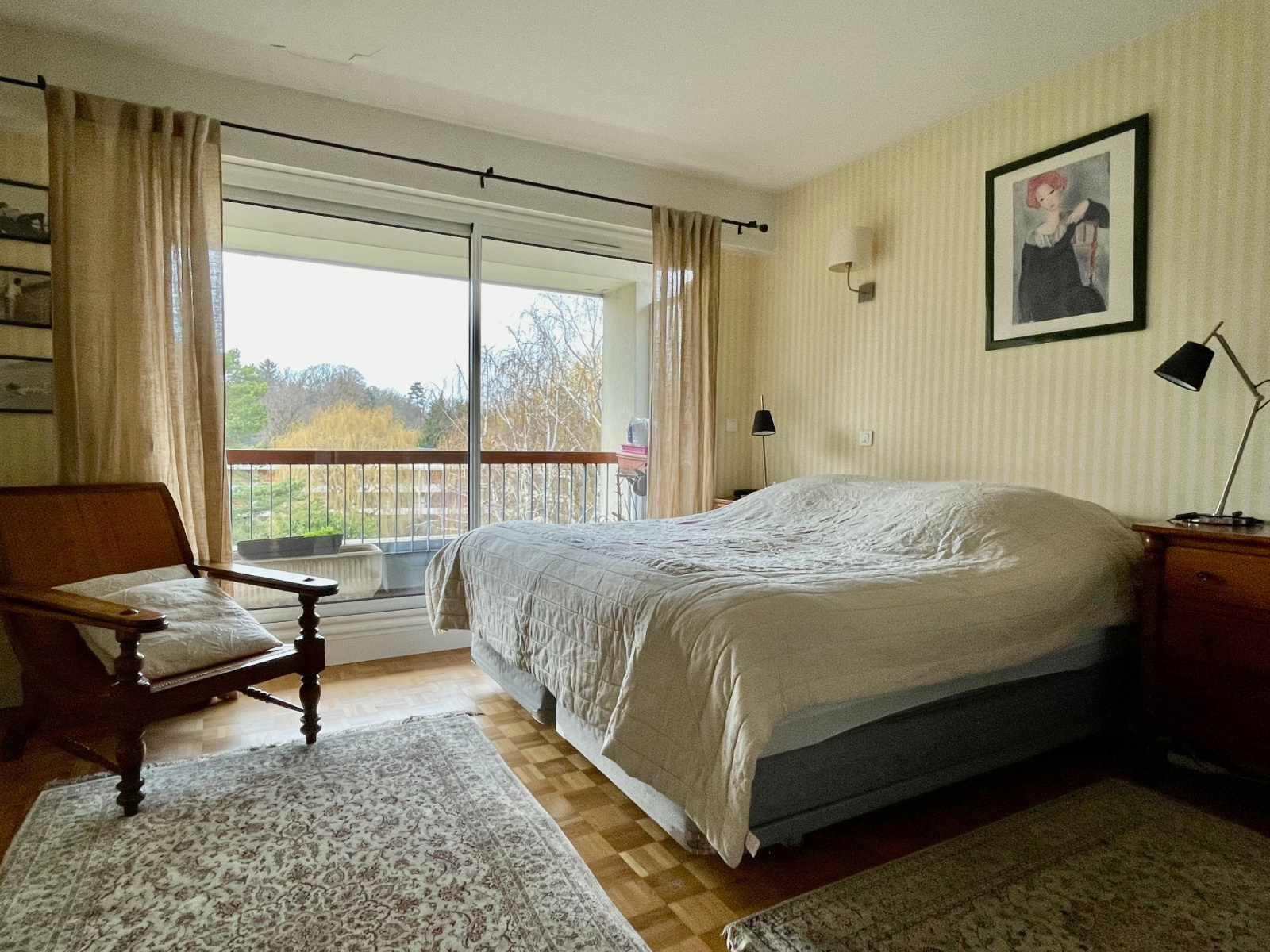 VENDU. RUEIL - FORÊT DOMANIALE DE LA MALMAISON - Appartement familial de 119m2, dans une copropriété très bien entretenue avec parc arboré, parfaitement au calme. Au second et dernier étage avec ascenseur, cet appartement traversant Est/Ouest bénéficie d'une belle terrasse de 17m2 avec vue dégagée et d'une belle luminosité. Sans aucune perte de place, il se compose d'une entrée ouverte sur le double-séjour de 46,85m2 orienté Ouest, d'une cuisine dînatoire, séparée et aménagée, de 3 chambres dont une suite parentale avec salle de bains, de deux salles d'eau, d'un wc séparé, d'une buanderie, de nombreux rangements. Deux stationnements et une cave complètent le bien. Charges de copropriété 5592€/an comprenant le chauffage, l'eau froide et chaude, l'ascenseur, l'entretien du parc et de l'immeuble. Pas de procédure en cours. Contact direct : O6.20.86.87.98