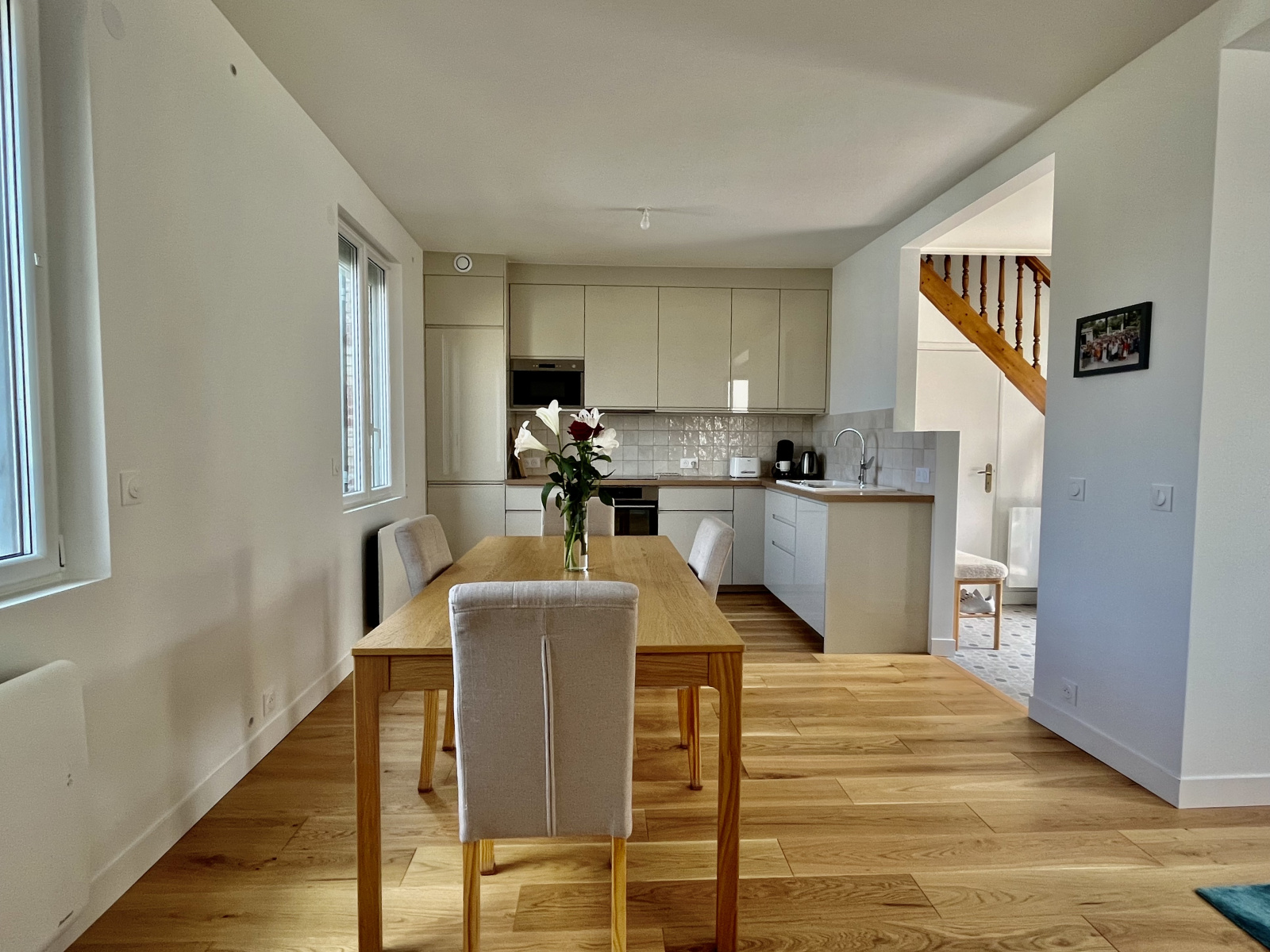 LES VALLEES - Idéalement située proche de la gare des vallées, des commerces, écoles, charmante maison 1930 ayant été rénovée en 2023 ( éléctricité, isolation, plomberie), sur un terrain de 231 m2. Elle se compose au RDC, d'une entrée, d'un bel espace ouvert avec cuisine et un wc indépendant. A l'étage, 2 chambres avec placards, un bureau ou chambre bébé, une salle de bains avec douche et WC. Combles. Sous-sol total de 38m2 avec belle hauteur sous plafond et fenêtre. Joli jardin plein Sud. Possibilité de garer 3 voitures sur le terrain. Ecoles Jules Verne, Léon Bourgeois et collège Lakanal. Un potentiel de surélevation/ extension est à étudier. Une maison avec un certain cachet et une situation privilégiée ! Contact Direct : 06 23 01 82 75.