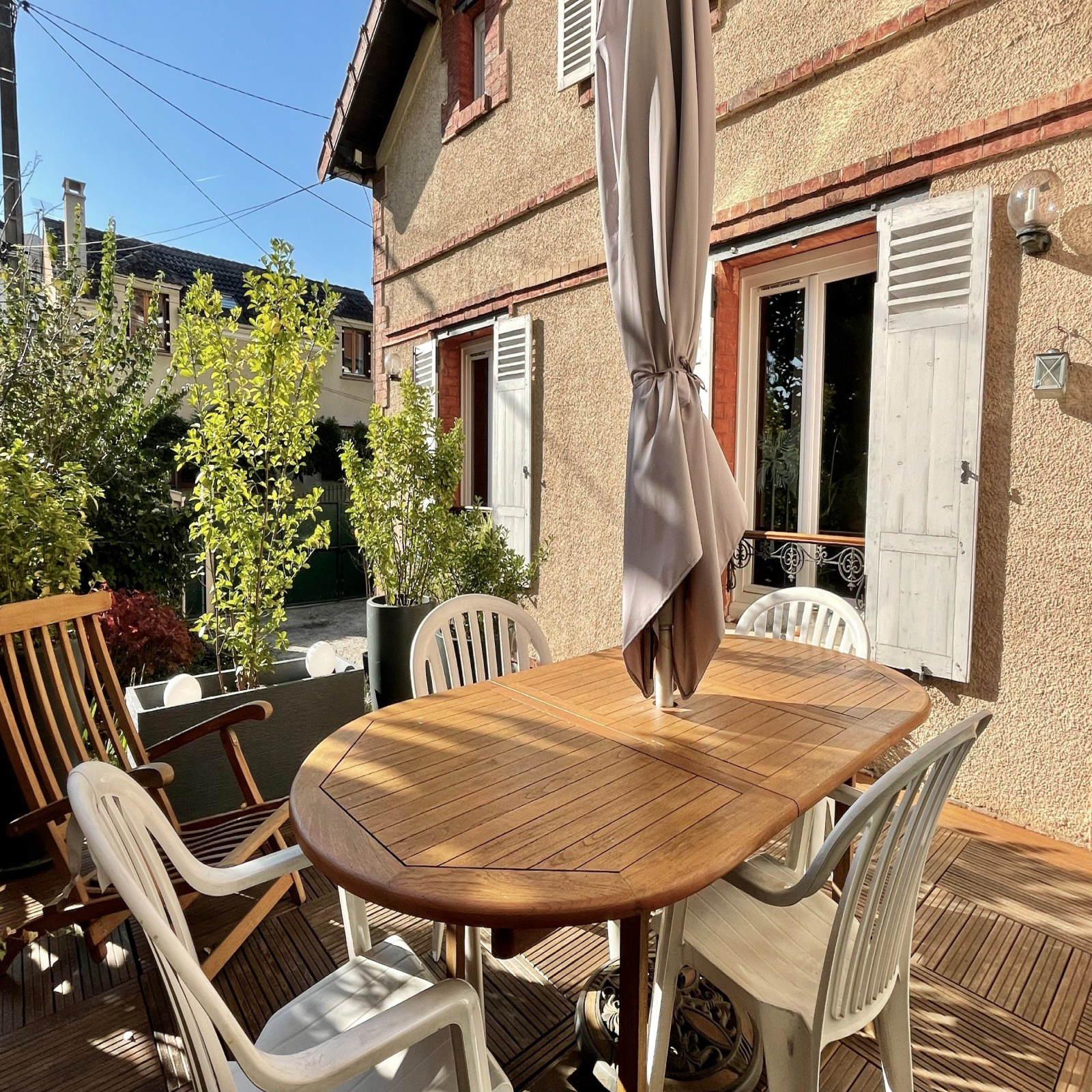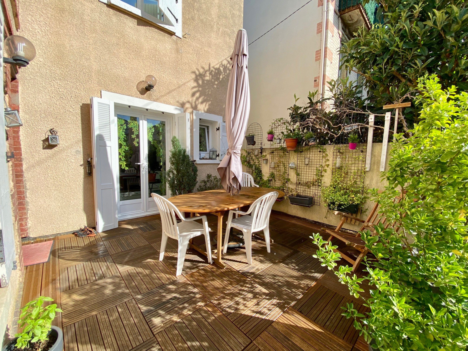 VENDUE - PETITE-GARENNE, charmante maison d'environ 90m2 située au fond d'une impasse, parfaitement au calme. Au rez-de-chaussée, une agréable pièce de vie avec cheminée, double exposition, la cuisine séparée donne un accès direct à la terrasse de 18m2, un dégagement avec rangements, une salle d'eau et des wc séparés. À l'étage, un palier, trois chambres dont une grande avec dressing et bureau. Un sous-sol total comprend une 4ème chambre ou family room, une buanderie/chaufferie, une cave à vin. Un espace extérieur végétalisé avec stationnement voiture possible. Très bonne sectorisation scolaire Jules Verne et Léon Bourgeois. Contact : O6.20.86.87.98
