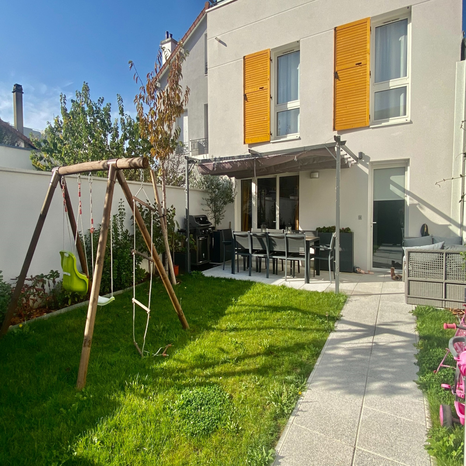 VENDUE. A 10 mn de la Gare de la Garenne Colombes, et à 5 mn du T2, au calme d'une jolie rue, magnifique maison dans une copropriété de standing de 2020. Au rdc de plain pied sur un joli jardin de 59 m2 : bel espace de vie d'env 30m2 comprenant séjour et cuisine séparée par une verrière, un wc avec espace buanderie. Au 1 er étage : 2 chambres, une salle de bains avec wc. Au 2eme étage : suite parentale (possibilité 4ème chambre) donnant sur une terrasse, dressing, salle d'eau avec wc. Une double place de parking complète le bien. Le joli exterieur, les prestations haut de gamme et la situation au calme font de cette maison un bien coup de coeur. Copropriété de 68 lots, charges annuelles de 2040 euros. Pas de Procédures en cours.