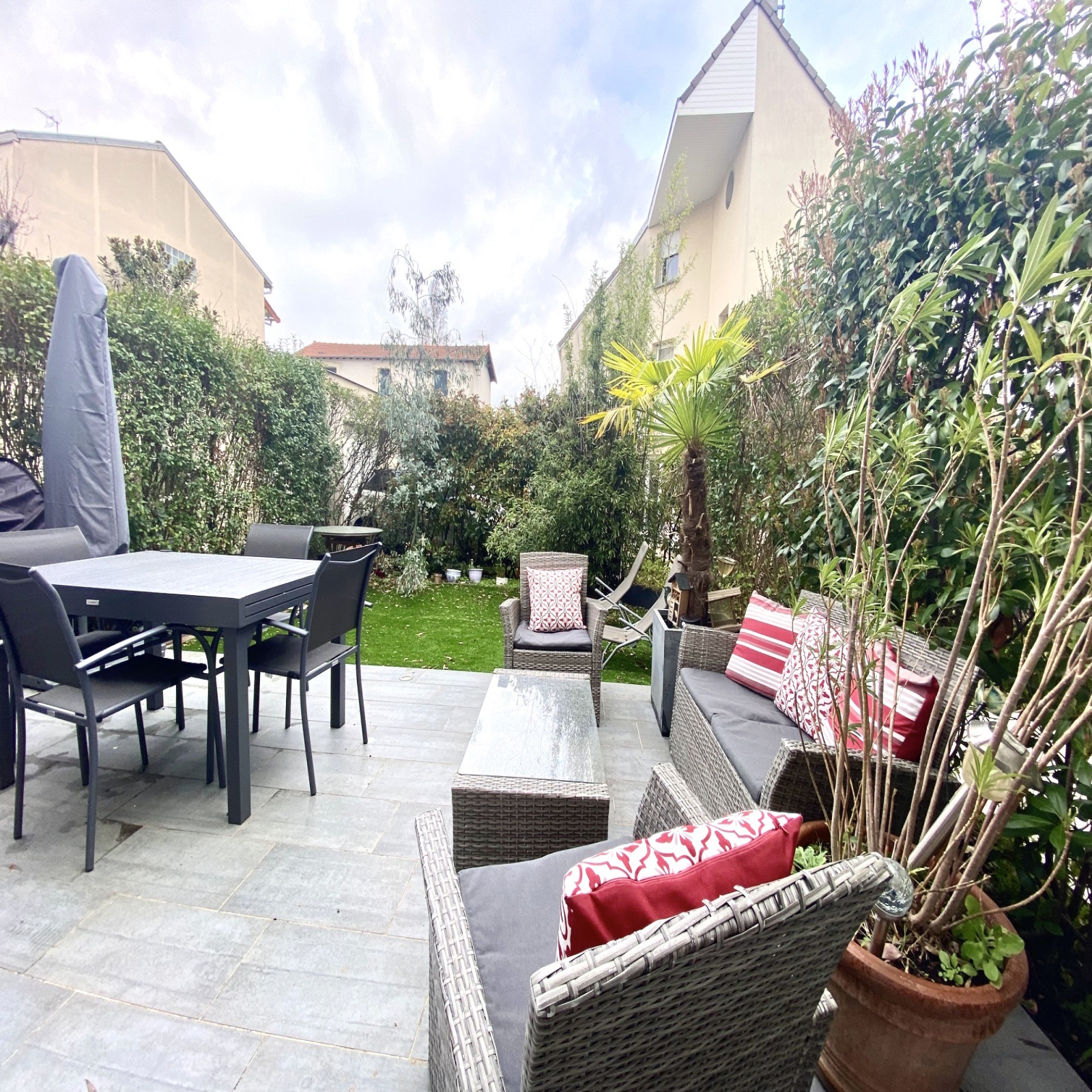 Idéal famille. Proximité collège Paparemborde, 10 mn gare de La Garenne-Colombes et du Tram T2. Dans une résidence récente, sécurisée et au calme, maison familiale (env. 123 m2) avec terrasse et jardin. Au RDC, entrée, cuisine dînatoire aménagée et équipée, salon de plain-pied sur une belle terrasse et un joli jardin, wc, accès au garage. Au premier étage, 3 chambres dont une chambre suite avec salle d'eau, salle de bain avec wc. Au second, très bel espace parents avec une salle d'eau et de nombreux rangements. Possibilité achat un Box en plus. Vous serez séduit par la distribution optimale de cette maison, sa décoration soignée, son confort et son calme.