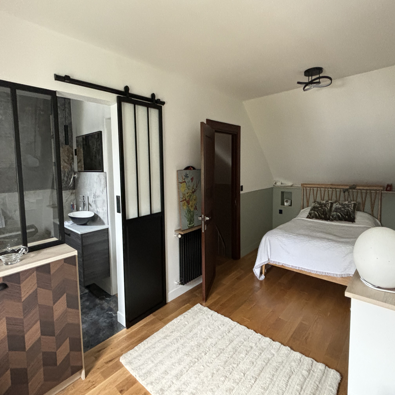 Au second, 2 chambres dont une suite avec une salle de douche et dressing. wc.