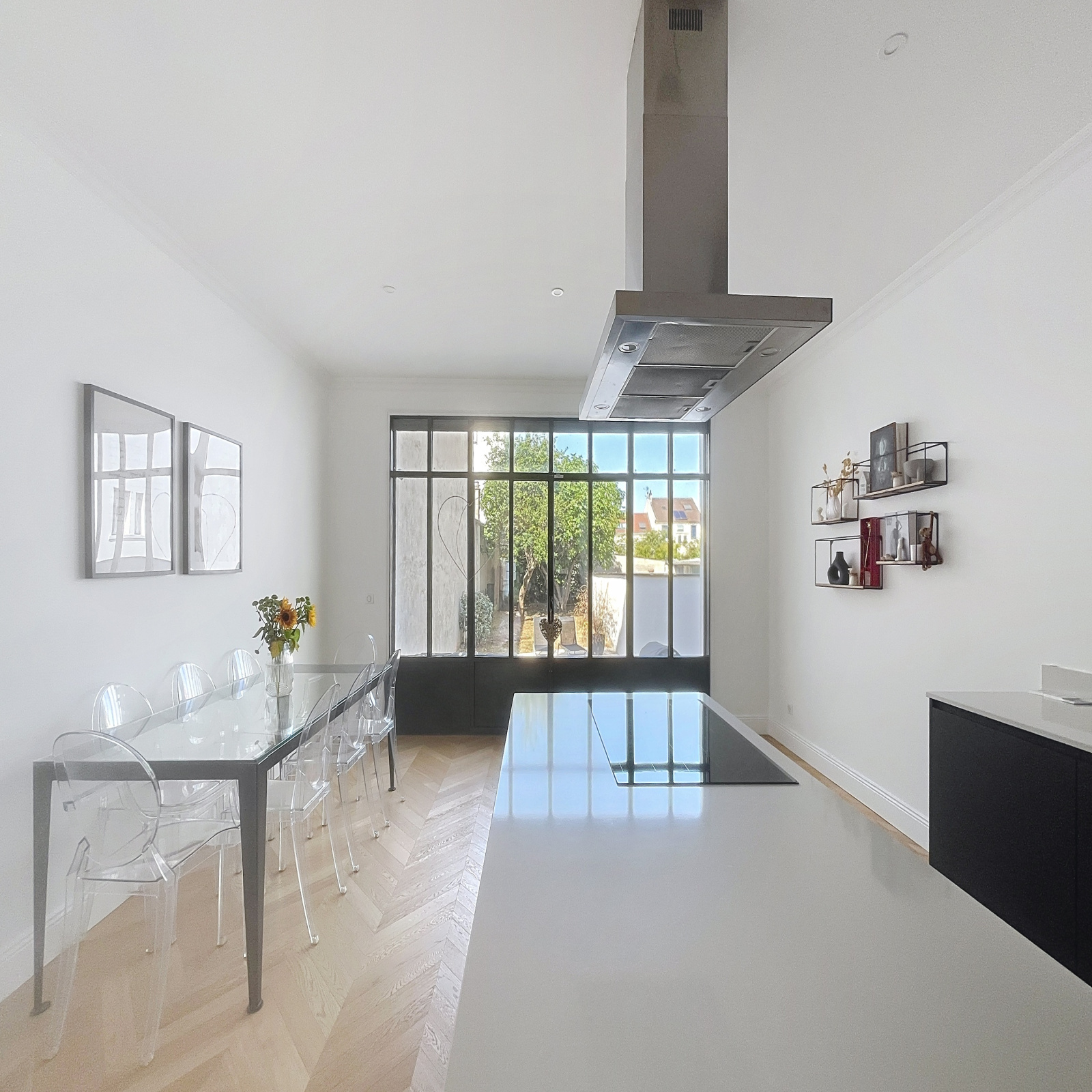 Cuisine ouverte sur salle à manger.