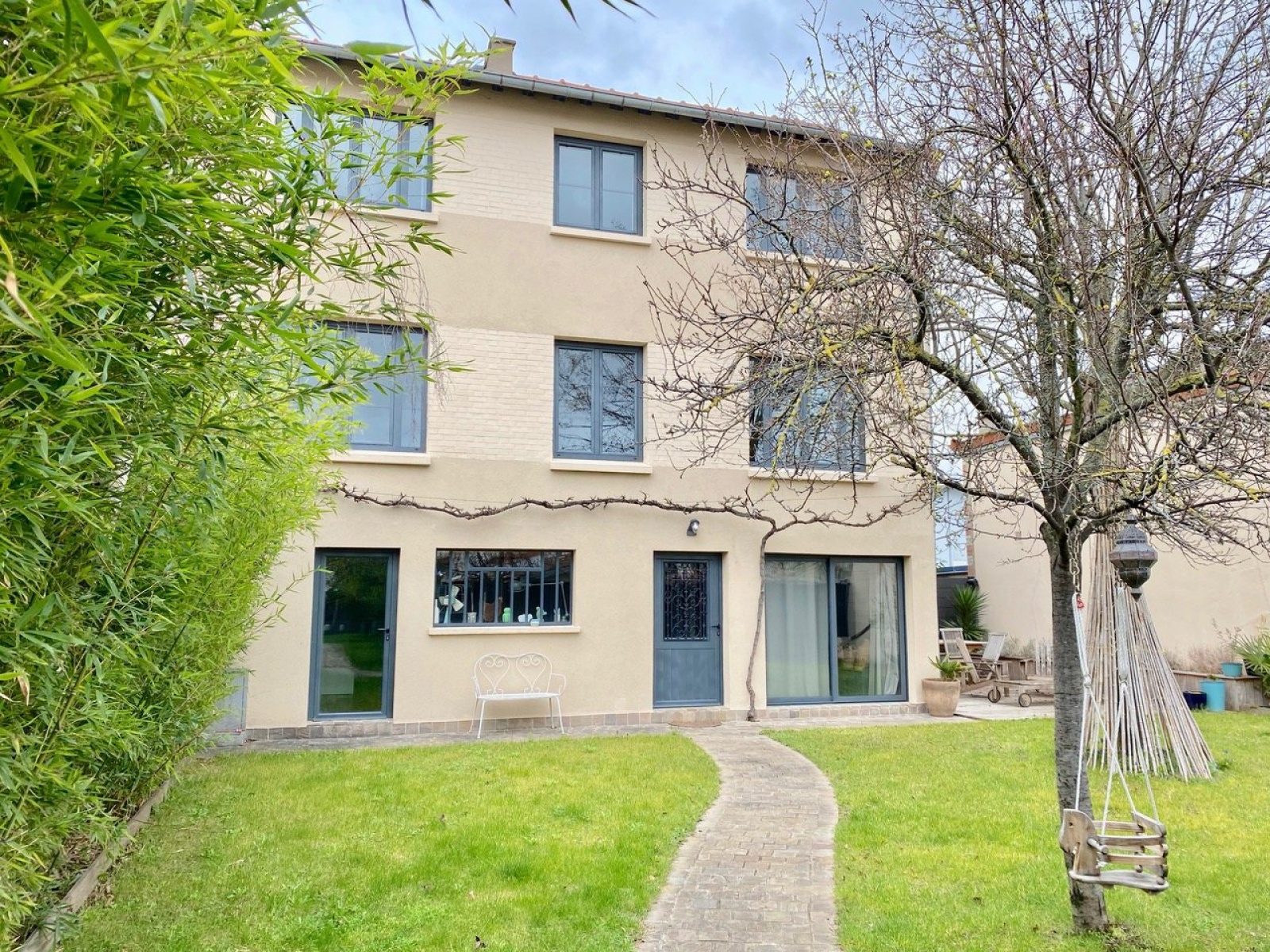 VENDUE - COUP DE COEUR. Au fond d'une allée bucolique, vous serez séduits par l'atmosphère de cette très jolie maison entièrement rénovée d'environ 130 m2. Elle est composée en rez de jardin : une entrée, une suite parentale avec salle d'eau, une chambre. Au 1er étage, très belle pièce de vie baignée de lumière, une grande cuisine dinatoire et un wc indépendant. Au 2ème étage, 2 très grandes chambres (>15m2), une salle de bains avec douche et wc. Devant la maison, un grand jardin d'environ 320 m2 plein sud avec terrasse et un appentis. Un parking à 3 mn et une cave complètent ce bien. Pour les amateurs de charme et de calme, à découvrir absolument.