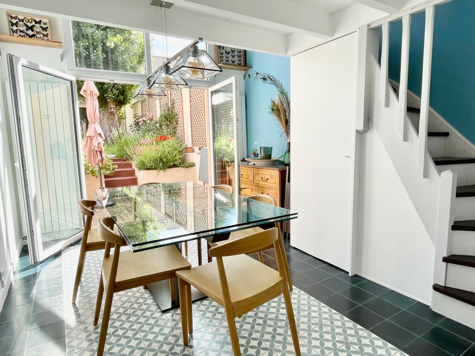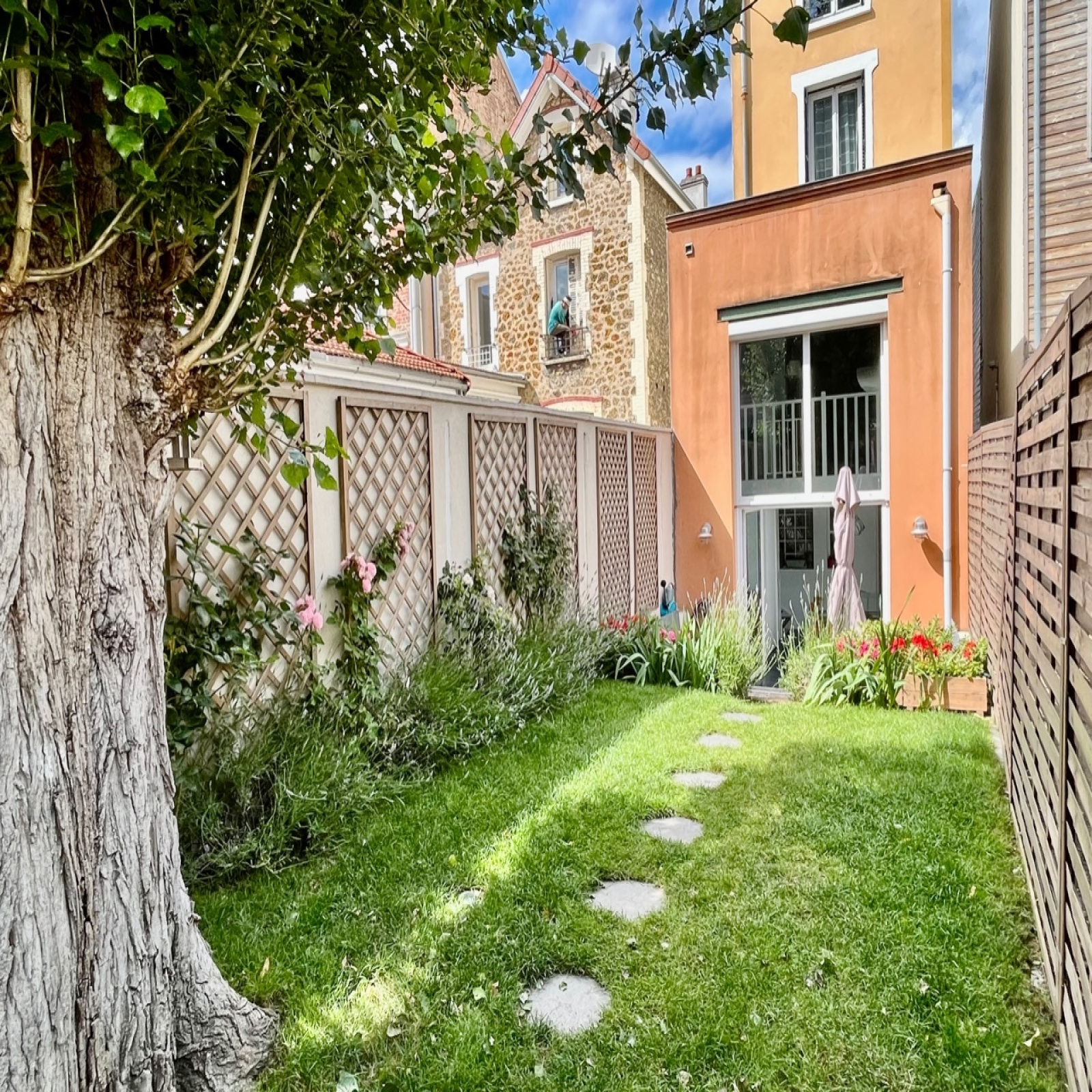 VENDUE. CENTRE-HOCHE. A 5 minutes de la gare de Colombes, du centre et de ses commerces, maison 1930 de 110 m2 et sa dépendance de 10 m2. Elle est composée en rez de jardin : d?une entrée, d?une cuisine dînatoire et d?une salle à manger donnant sur un ravissant jardin exposé plein sud. Au 1er étage : Salon, bureau, un espace buanderie et un wc indépendant. Au 2ème étage, 2 chambres, salle d?eau et wc. Au dernier étage : une chambre avec salle de bains attenante. Une dépendance aménagée au fond du jardin, idéal pour le télétravail ou chambre d'amis, complète le bien. Une cour d?accueil permet de garer une voiture familiale. Sectorisation Hoche et Lakanal. L?emplacement recherché, le calme et le charme de cette maison en font un bien rare sur le secteur. Contact : 06 64 19 41 82