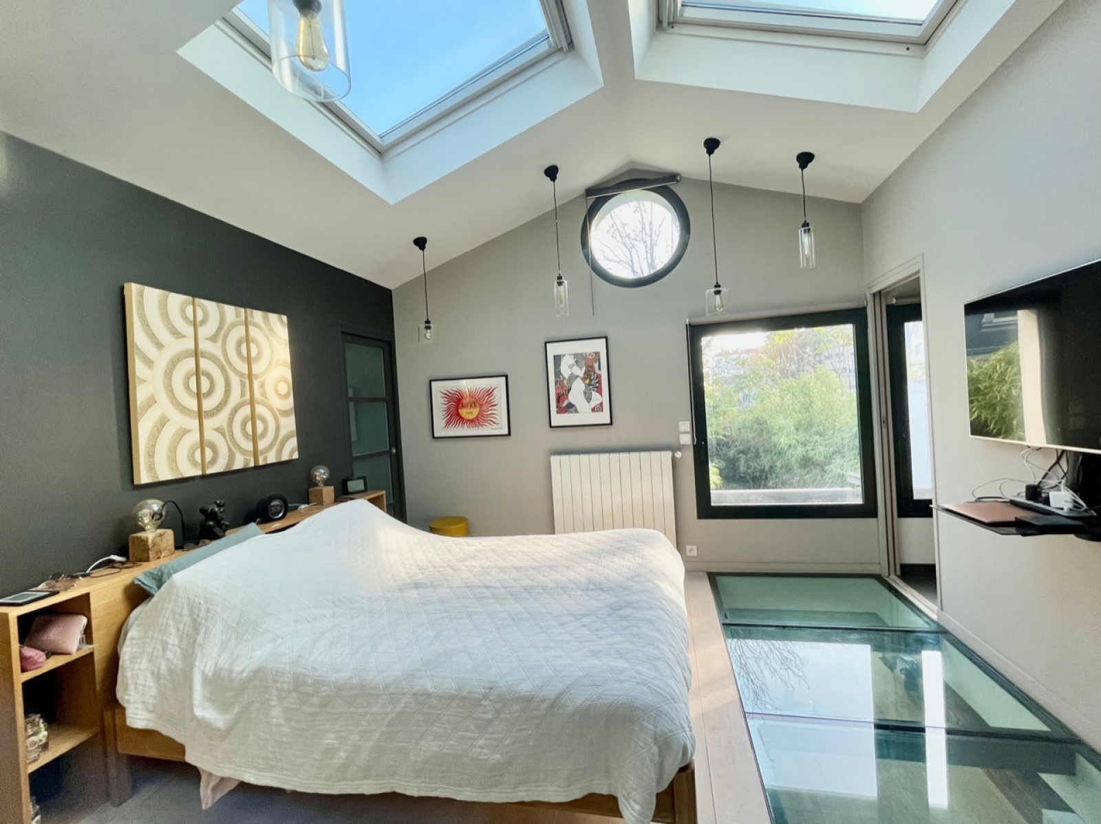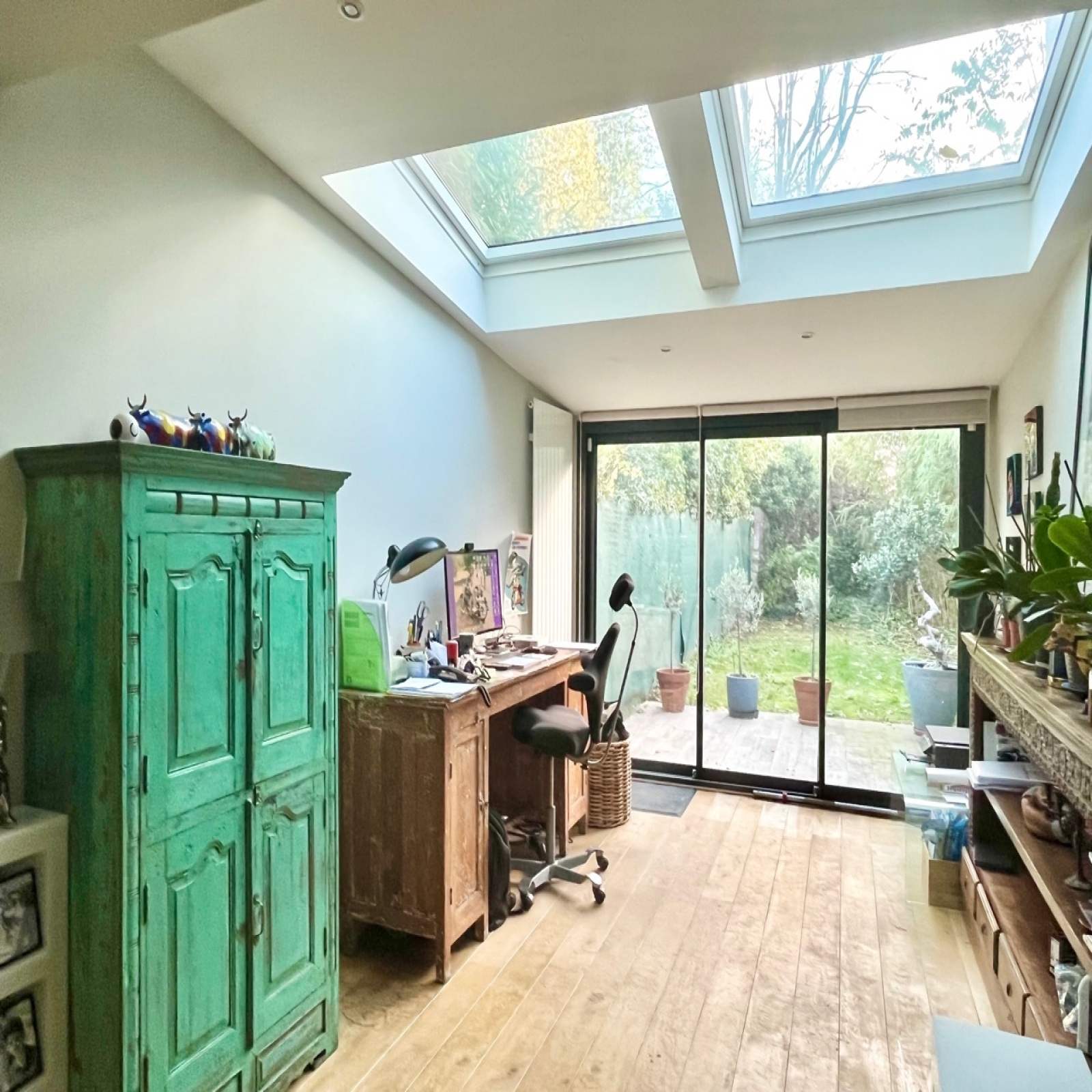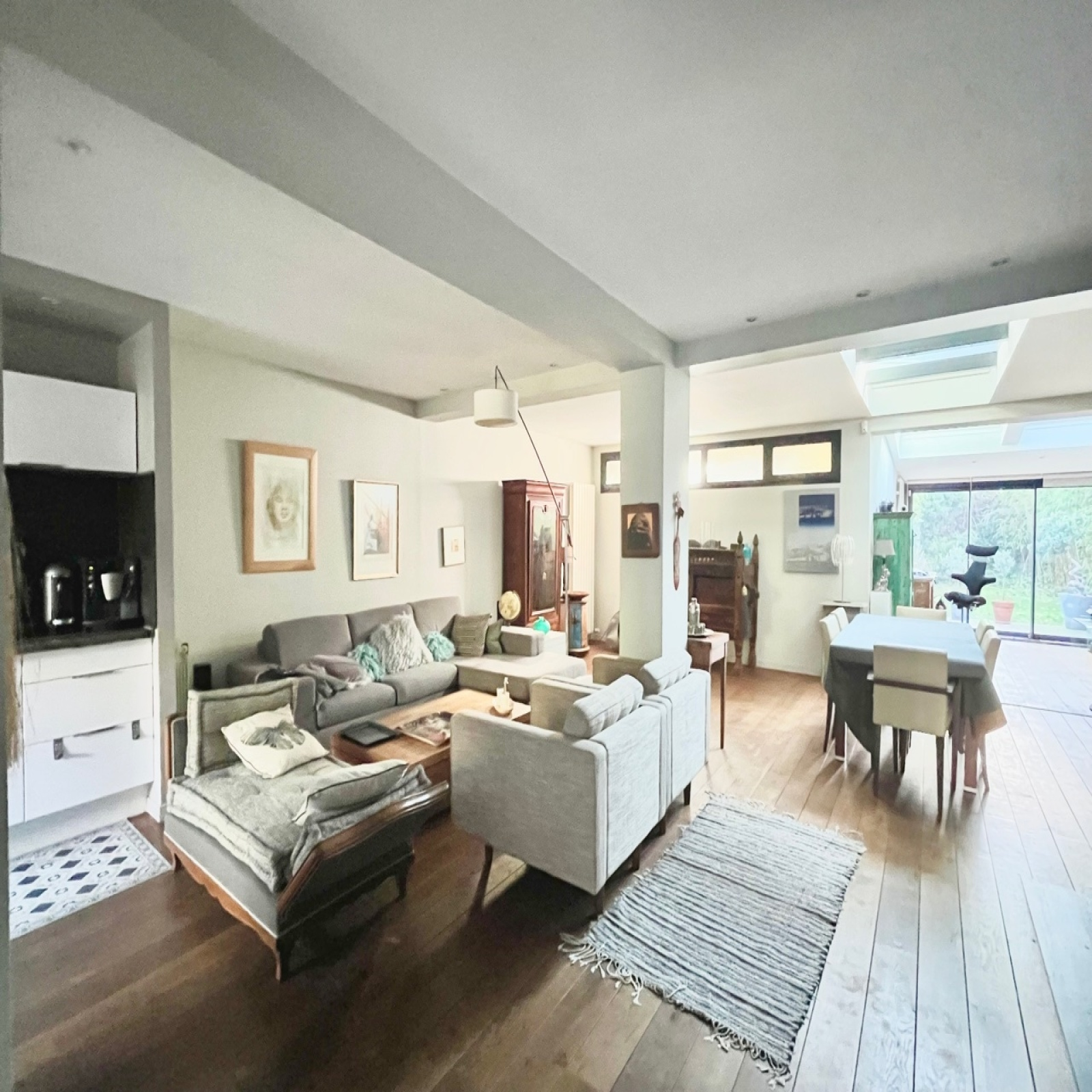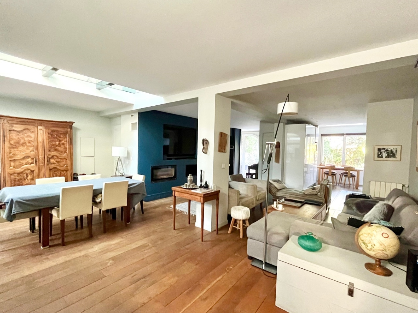 LES VALLEES. A proximité immédiate de la gare et des commerces. Située dans un écrin de verdure, magnifique maison de 163 m2 alliant le charme de l?ancien et une rénovation contemporaine, plus une dépendance de 15 m2 sur un terrain de 456 m2. Offrant de belles prestations (Isolation, ravalement récent, matériaux de qualités, alarme...) et un excellent DPE (C), cette maison offre au rez-de-chaussée un plateau de 93 M2 de plain-pied, composé d'une entrée avec placard, d'un séjour de 50 m2 avec insert, d'une cuisine dinatoire, aménagée et équipée, de 20 m2 et d'un bureau de 13 m2 (possibilité chambre supplémentaire), d'une buanderie et d'un wc indépendant. A l'étage : une magnifique suite parentale avec deux dressings, une salle d'eau et un wc indépendant, 2 chambres dont une avec mezzanine, une salle d'eau avec wc. Un sous-sol partiel offre une chaufferie et des espaces de rangements. La dépendance, aménagée en studio avec kitchenette, salle d'eau et wc permet d'accueillir une jeune fille au pair ou une profession libérale. Cette maison possède un ravissant jardin avec une terrasse de 35 m2 et exposée plein ouest devant la maison et un second jardin à l'arrière. Un garage ouvert, un abri à vélos et un abri de jardin complètent ce bien rare, qui séduira une famille souhaitant une maison confortable et sectorisée sur Georges Pompidou et Lakanal. Les prestations, le volume de l'espace de vie et la dépendance font de cette maison un véritable bien coup de coeur ! Votre contact : Caroline Langellier (EI) Agent commercial inscrite au RSAC de Nanterre sous le numéro 829 072 016, joignable au O6.64.19.41.82.