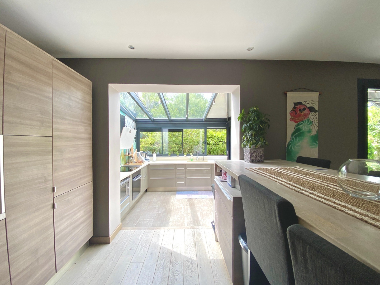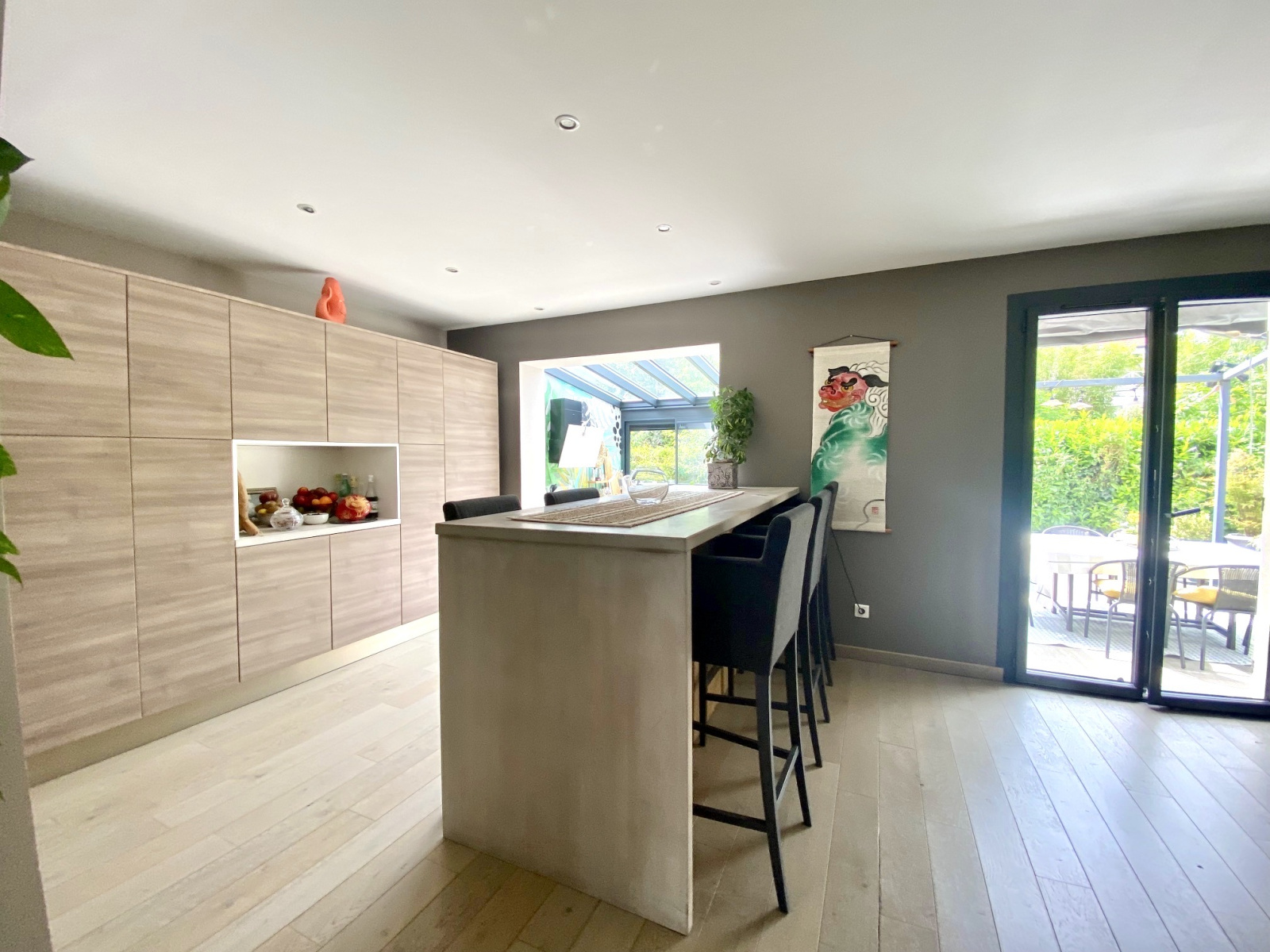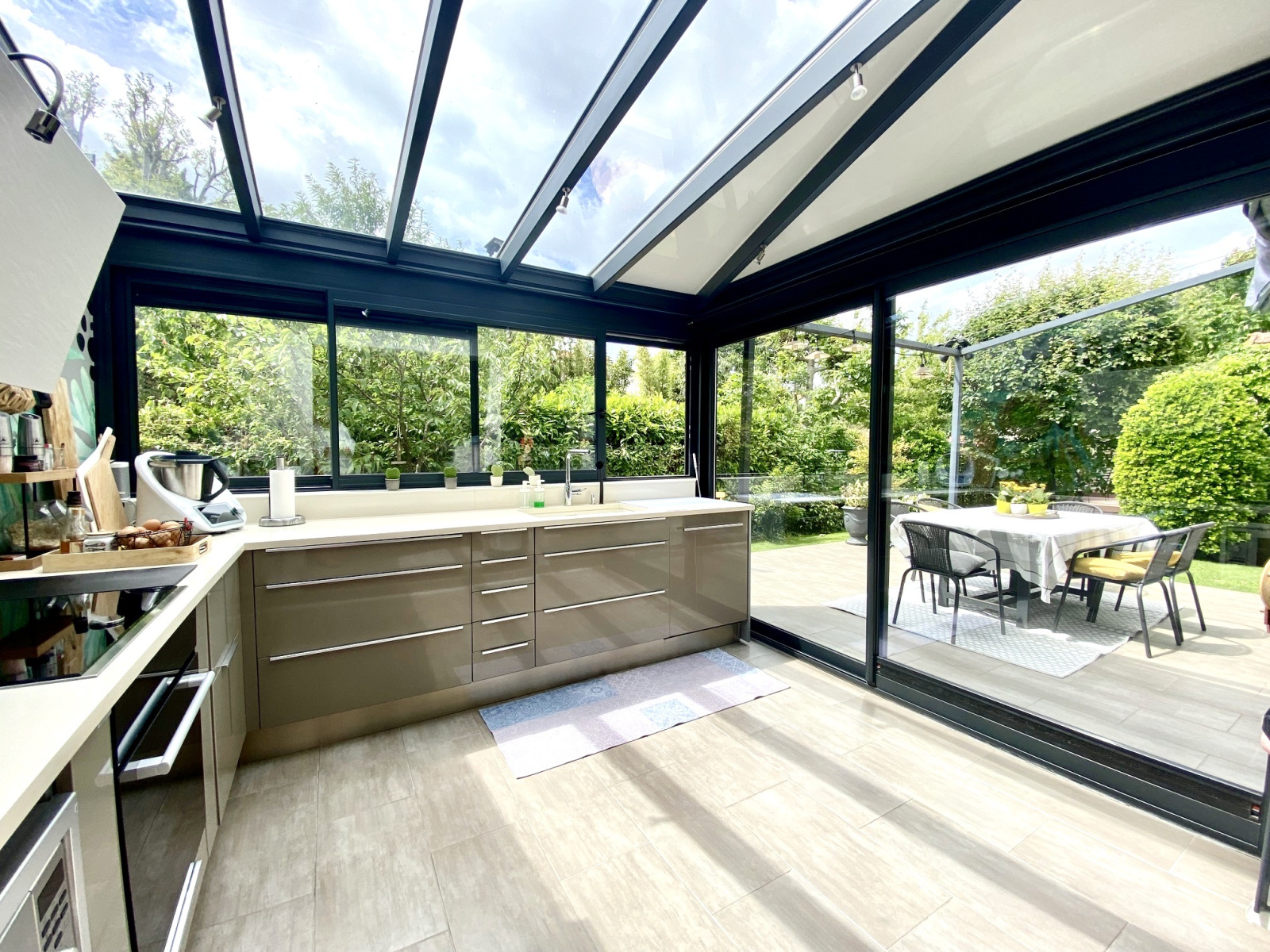 Cuisine en partie sous véranda avec accès direct à la terrasse de 20 m2