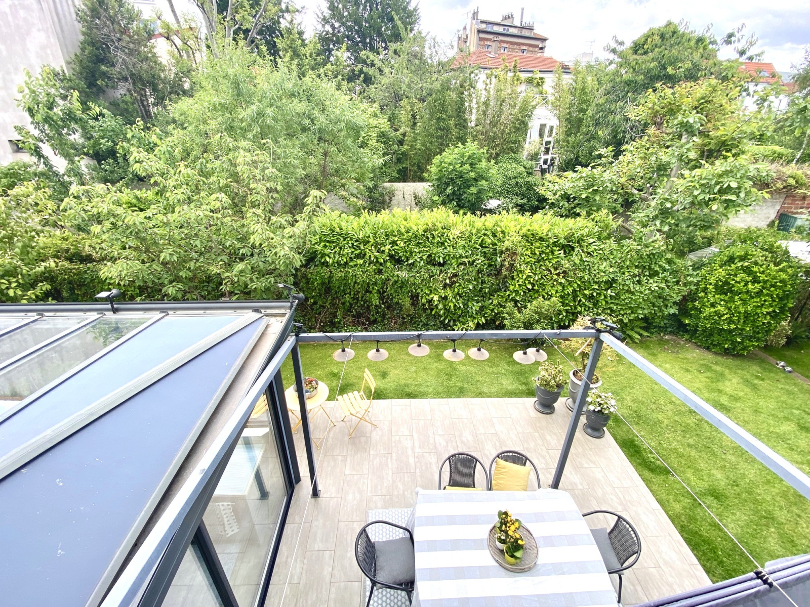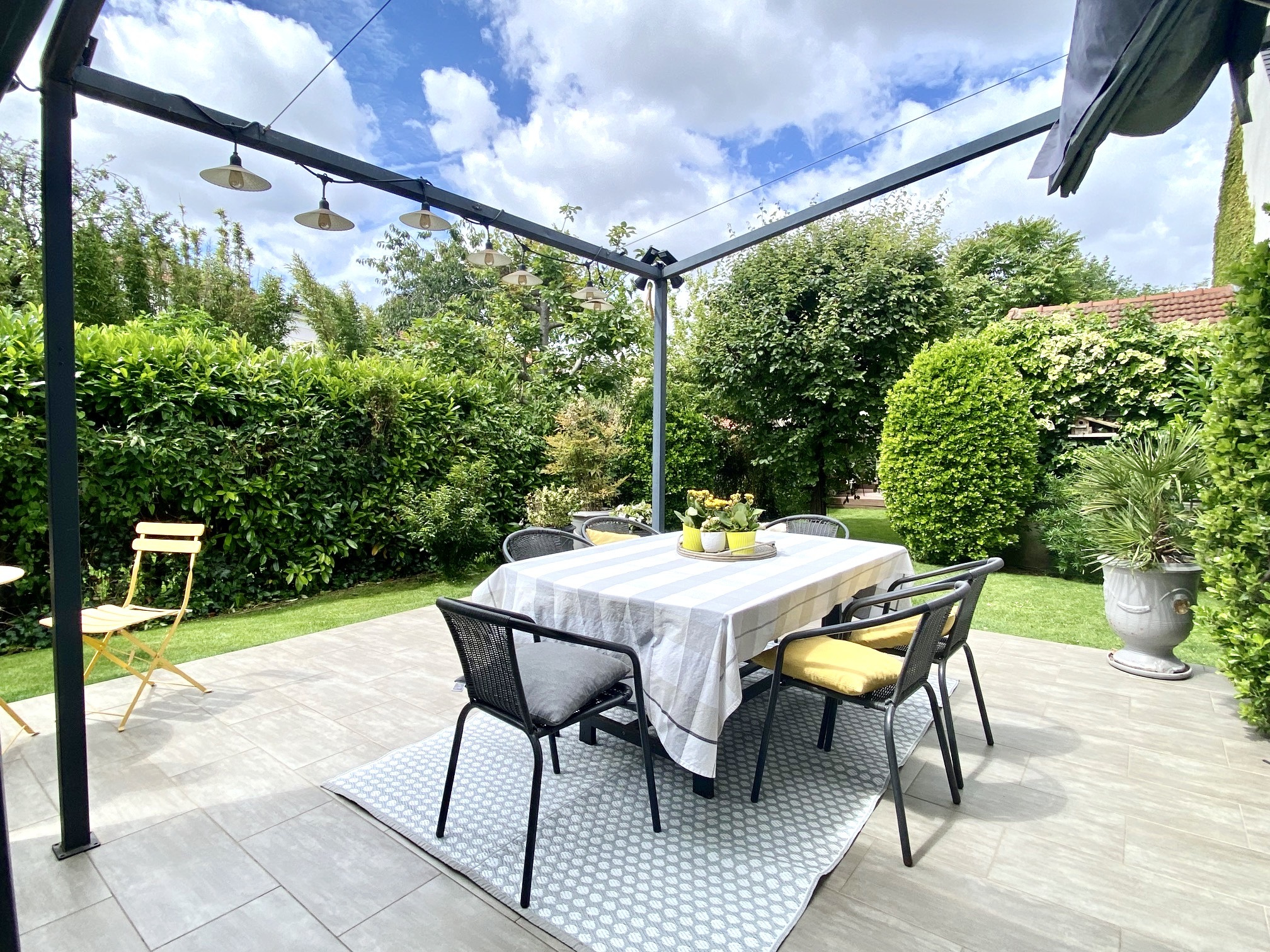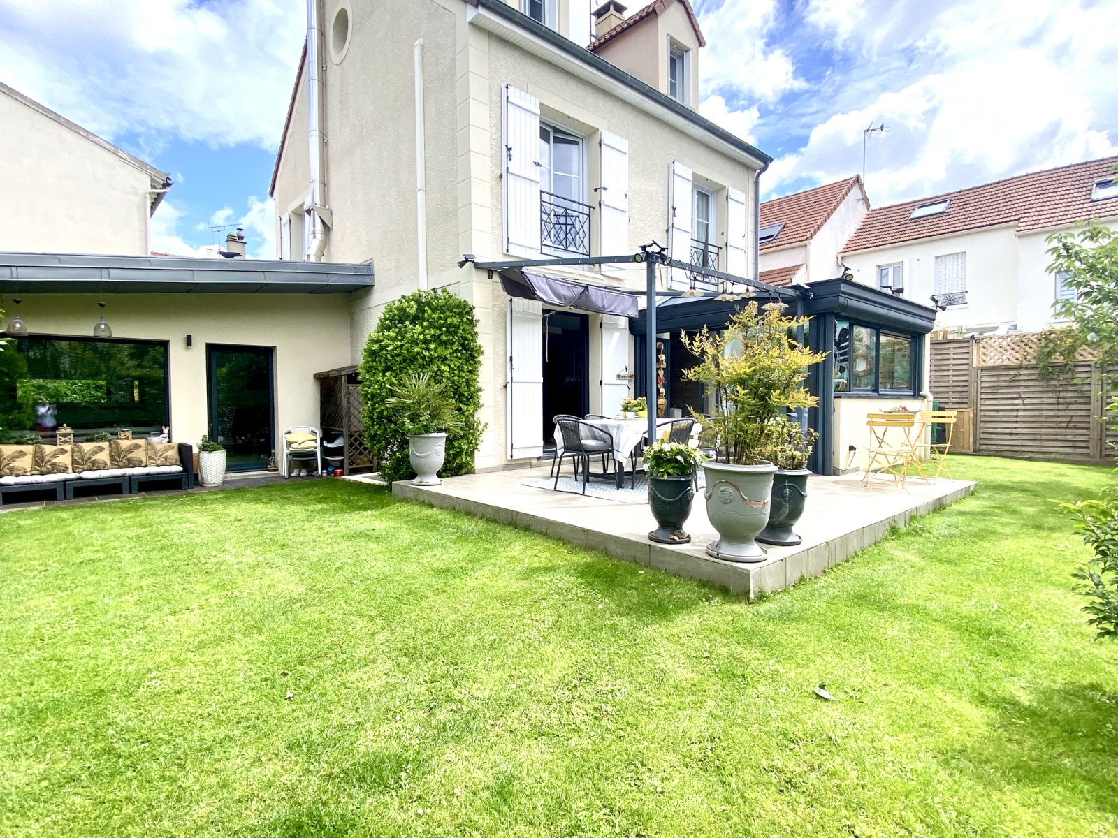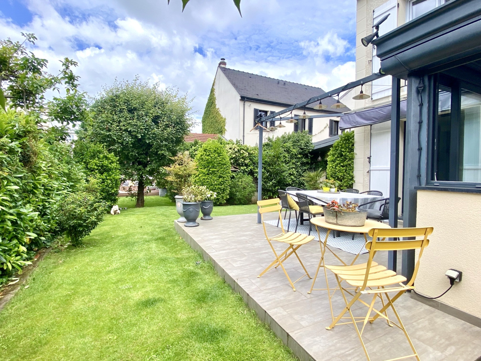 SOUS OFFRE. COUP DE COEUR. À proximité de la gare de Colombes (Saint Lazare 11 mn) et du centre ville, parfaitement au calme et à l'abri des regards, maison contemporaine et familiale de 170 m2 sur terrain arboré de 403 m2.