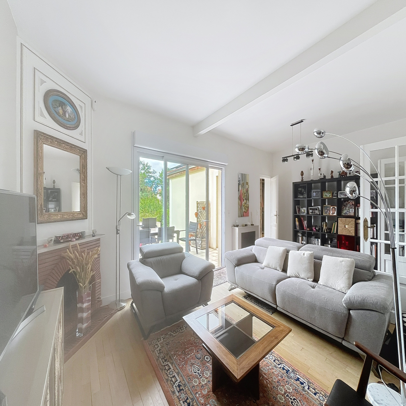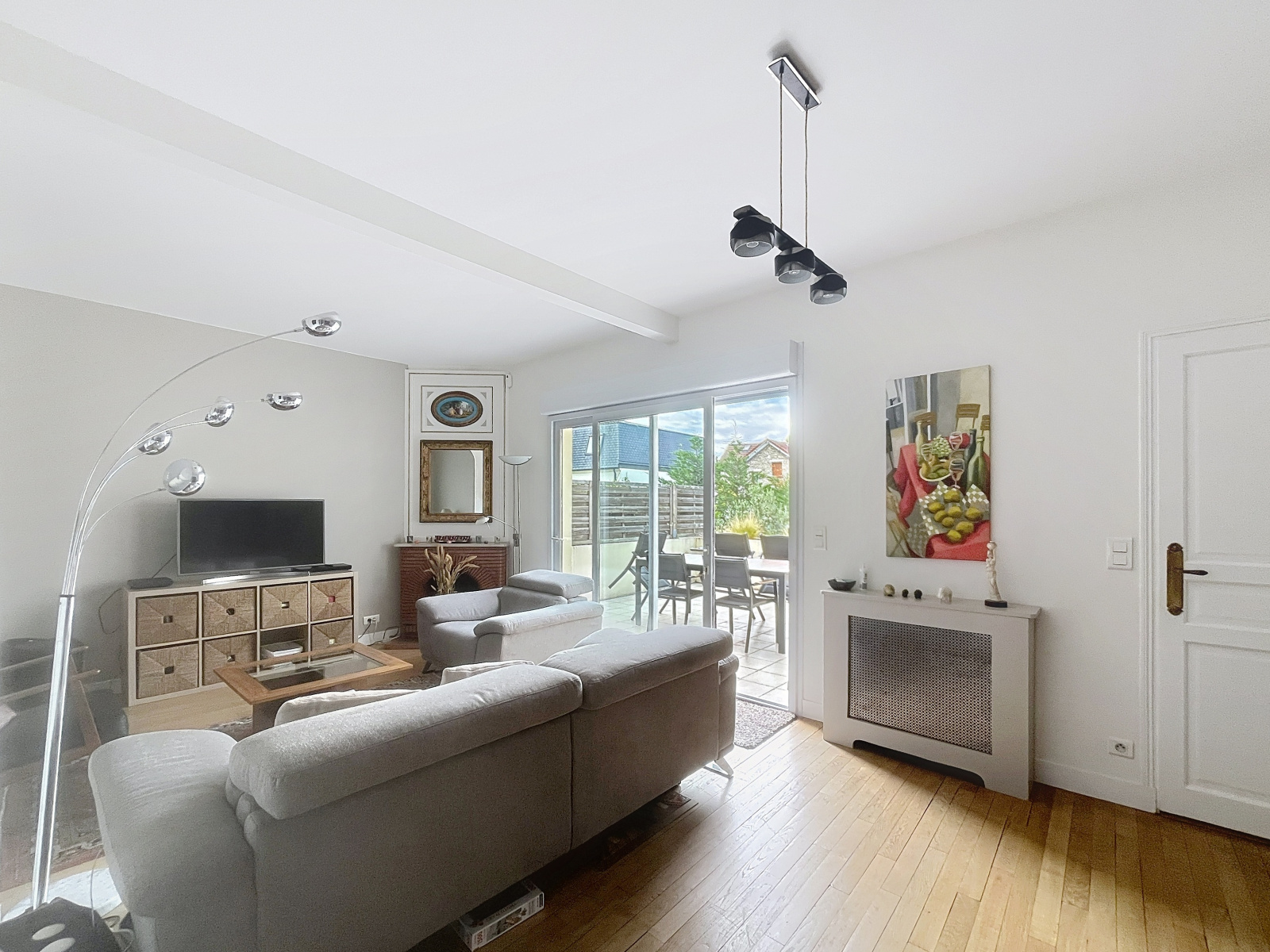 Proche du centre-ville et des transports (direct St Lazare 15 mns), maison familiale de 133 m² (hors sous-sol) sur un terrain de 446 m² exposé plein sud et sans vis-à-vis. Entièrement rénovée et bien entretenue (Ravalement, toiture, isolation des combles, pompe à chaleur, ballon thermodynamique, panneaux photovoltaïques...) elle offre au rez-de-chaussée, un double séjour de 42 m² donnant accès à une belle terrasse de plain-pied puis au magnifique jardin exposé sud, d’une cuisine de 9 m², d’une chambre parentale avec dressing et salle d’eau et d’un wc indépendant. A l’étage, 3 chambres, un coin bureau, une salle de bain et un wc indépendant. En rez-de-jardin, une belle pièce d’appoint de 17 m2, une grande buanderie avec douche, un wc indépendant et un garage. L’esprit « maison de vacances » de cette maison, sa luminosité, et son beau jardin paysagé en font un véritable bien coup de coeur. Votre contact : Caroline Langellier (EI) RSAC de Nanterre sous le numéro 829 072 016, joignable au O6.64.19.41.82.