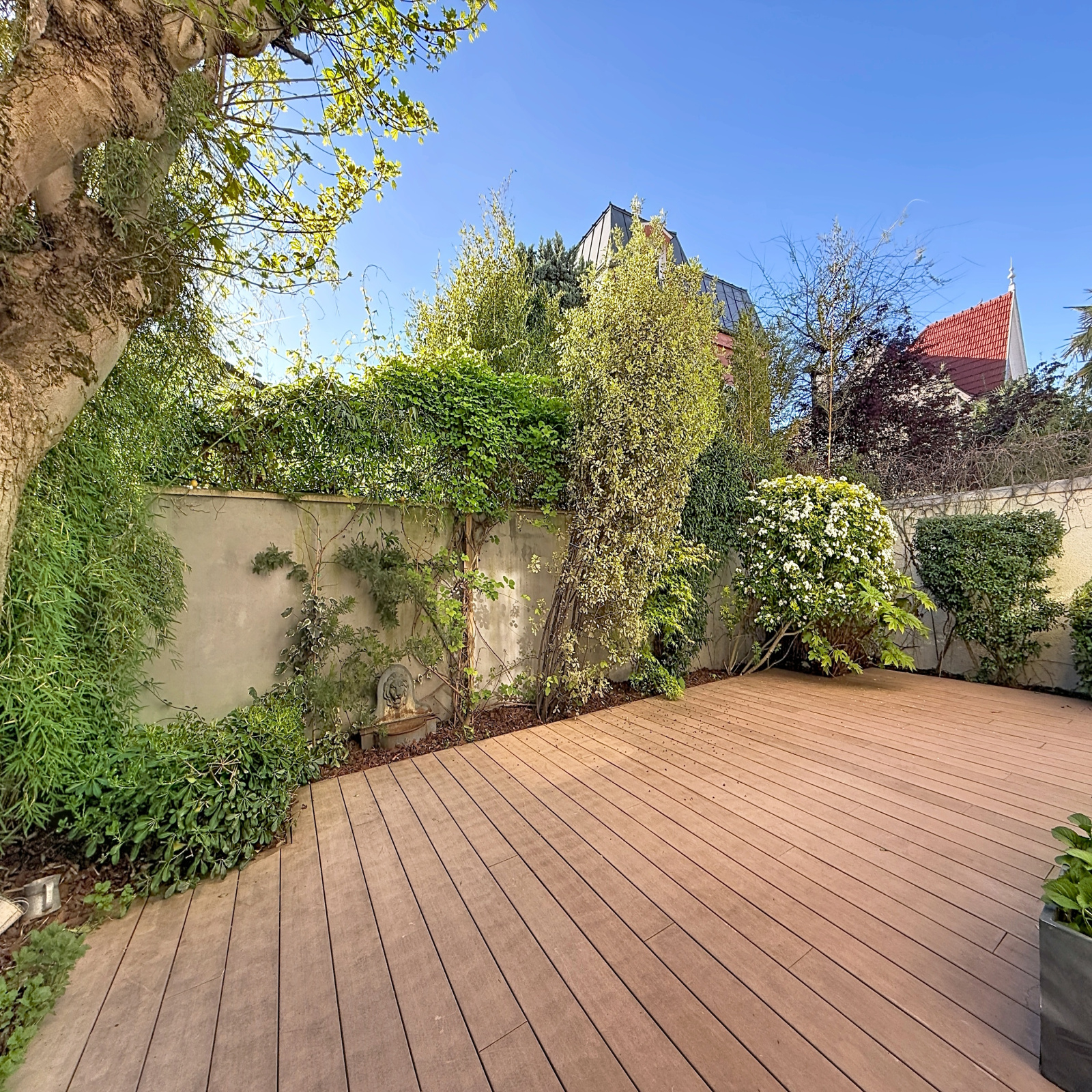 À l’extérieur, vous découvrirez une belle cour d’accueil arborée, ainsi qu’un superbe jardin terrassé et paysagé, véritable écrin de verdure à l’abri des regards, un atout rare dans le secteur.