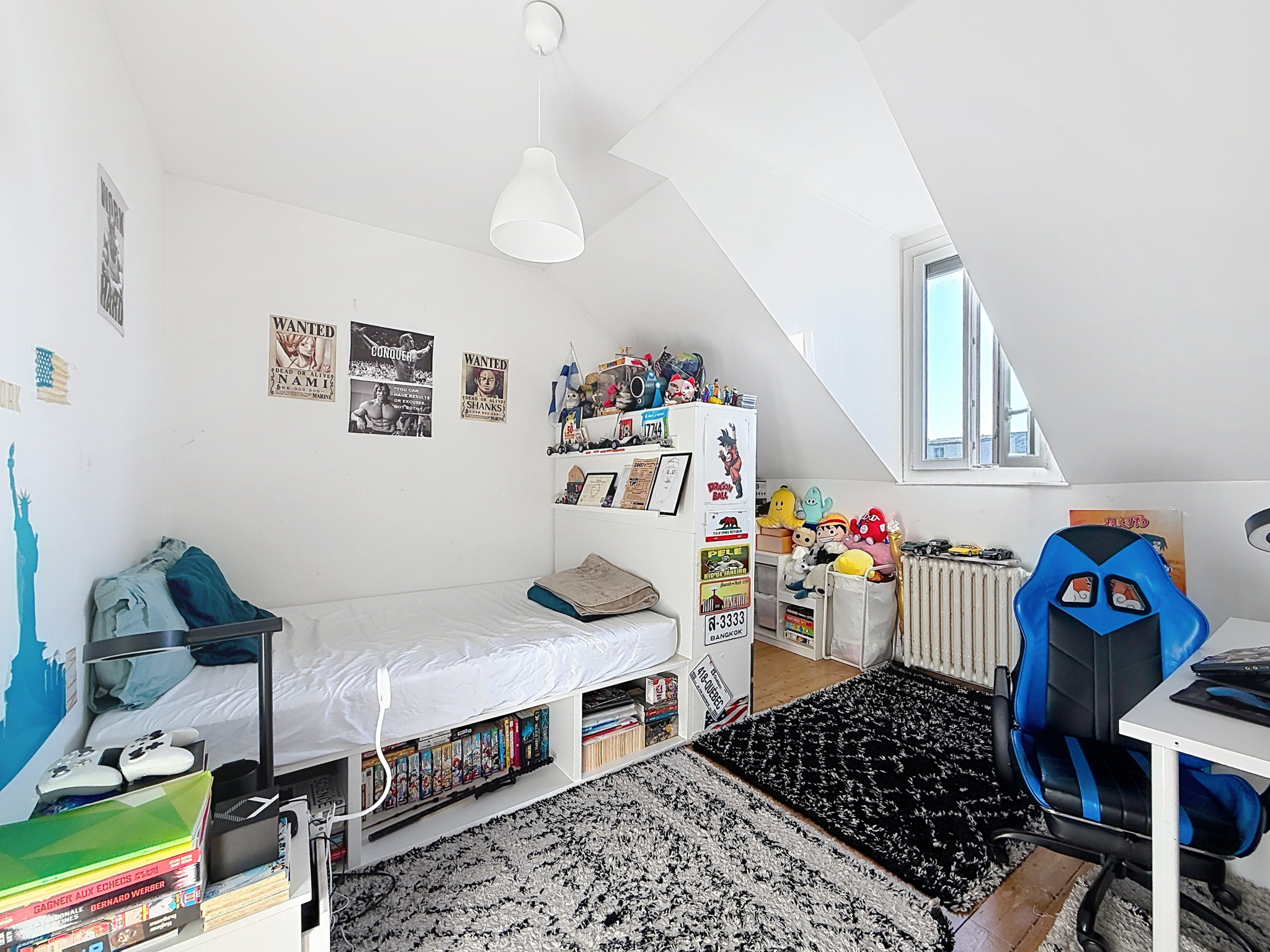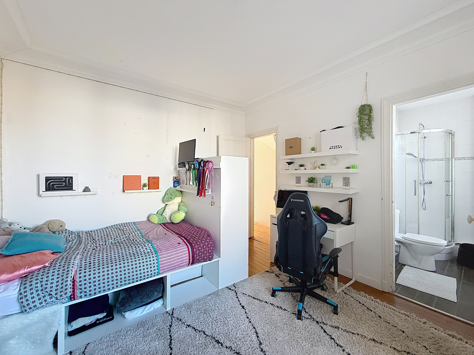 Le deuxième étage propose deux autres chambres spacieuses, une salle de bains avec wc, ainsi qu’un bureau, idéal pour le télétravail ou une chambre d’appoint.
