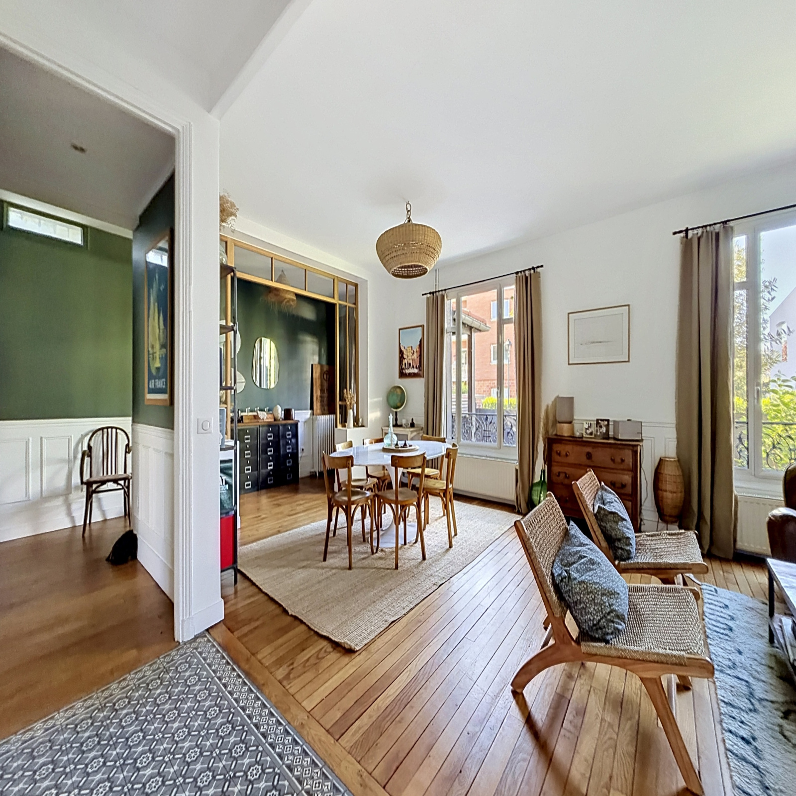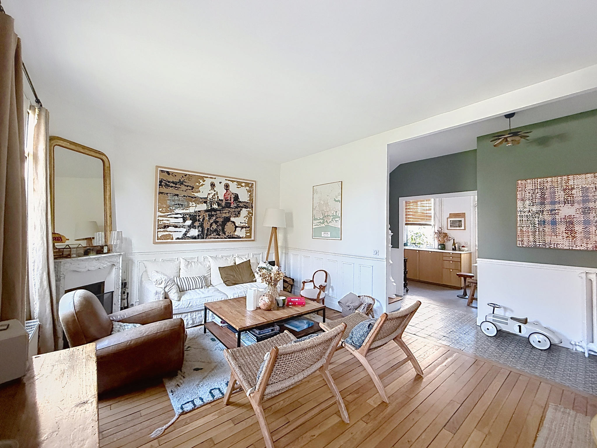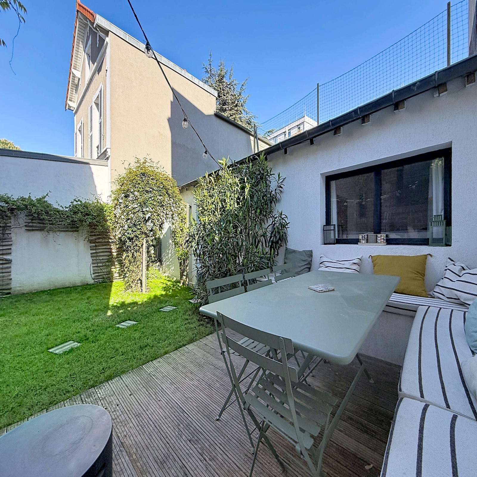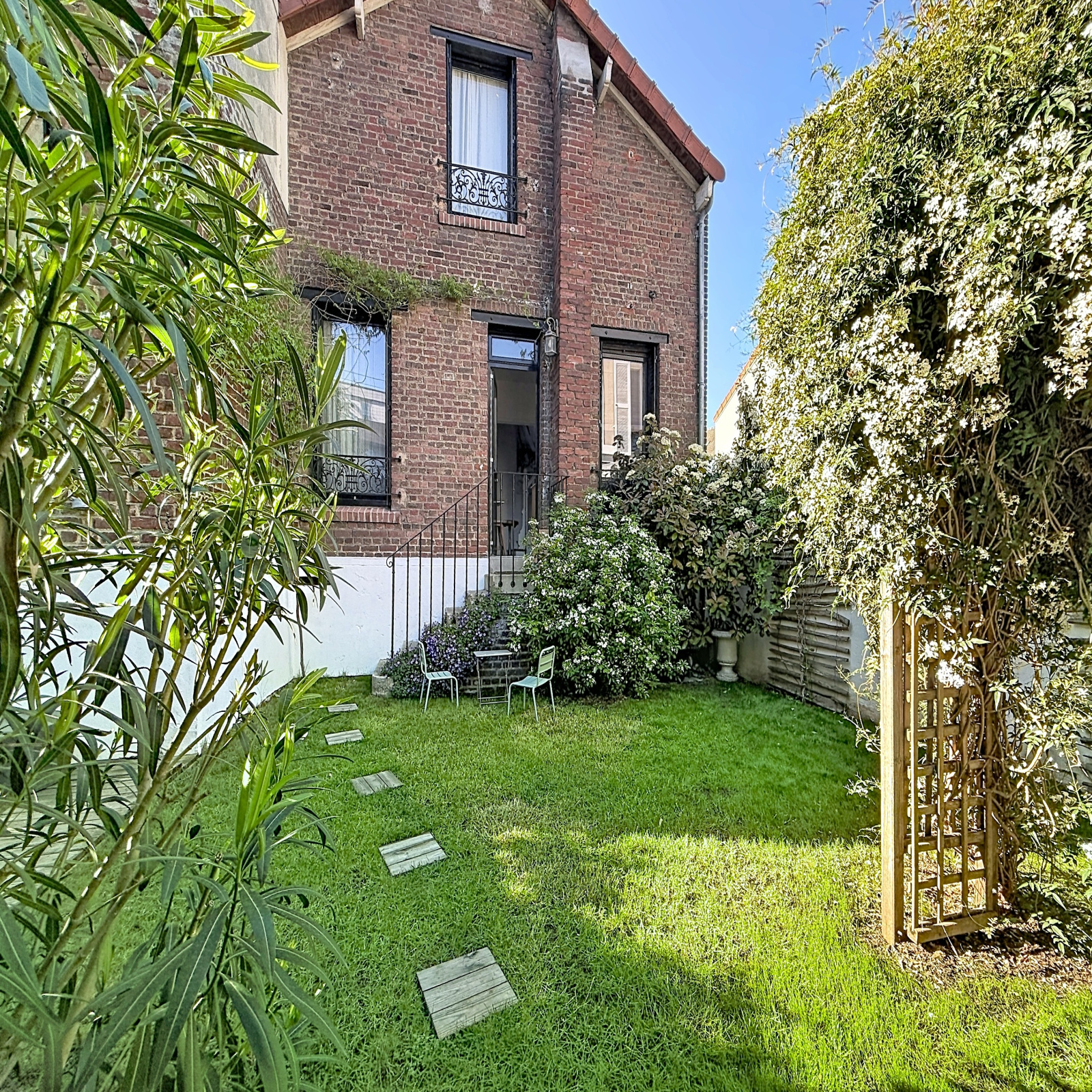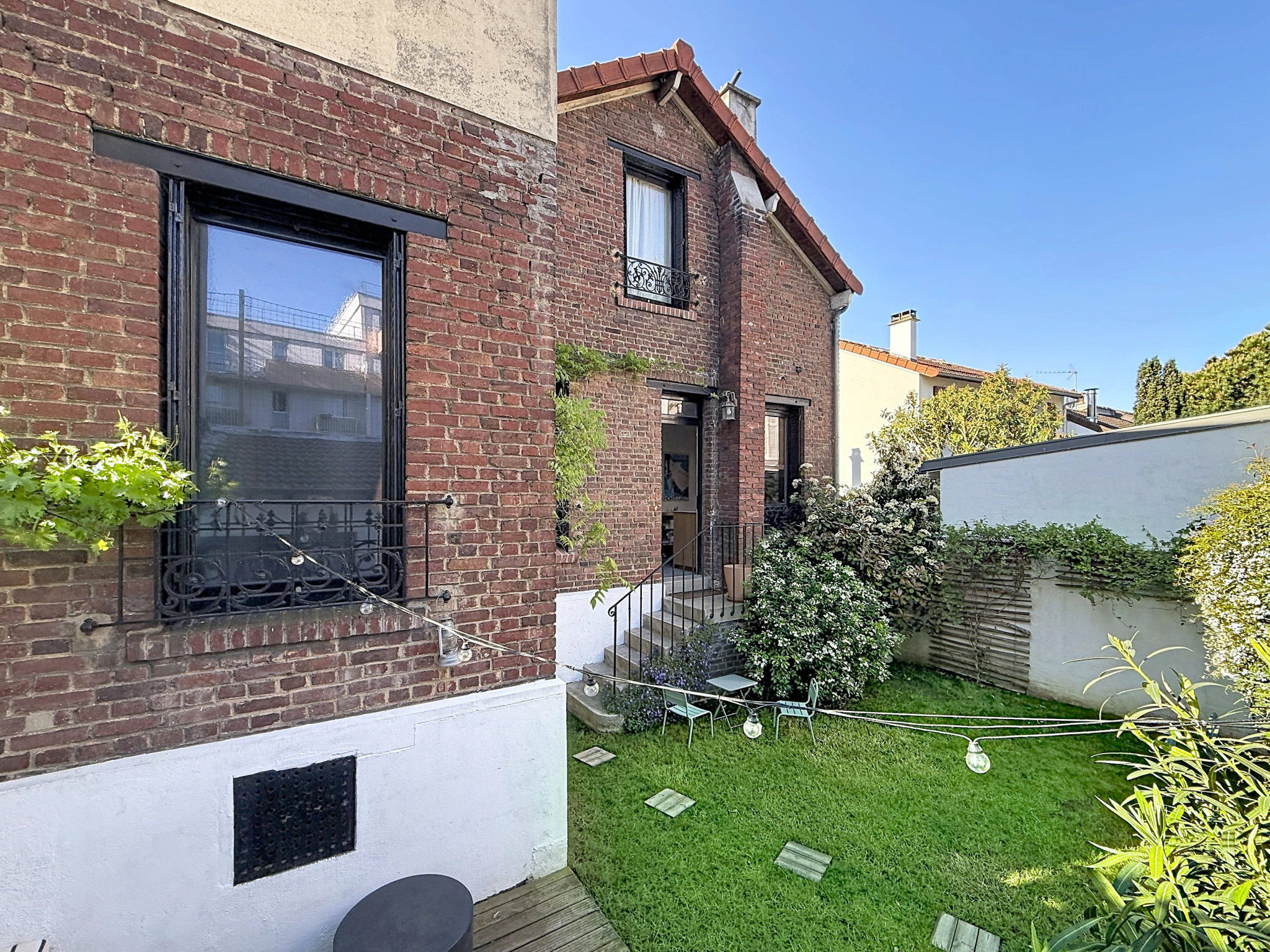 RARE – PETITE GARENNE, Gare des Vallées. Belle maison familiale en R+1 avec une dépendance aménagée, totalisant 139 m2 au sol (hors sous-sol). Elle allie le charme de l’ancien à une belle rénovation contemporaine de qualité.