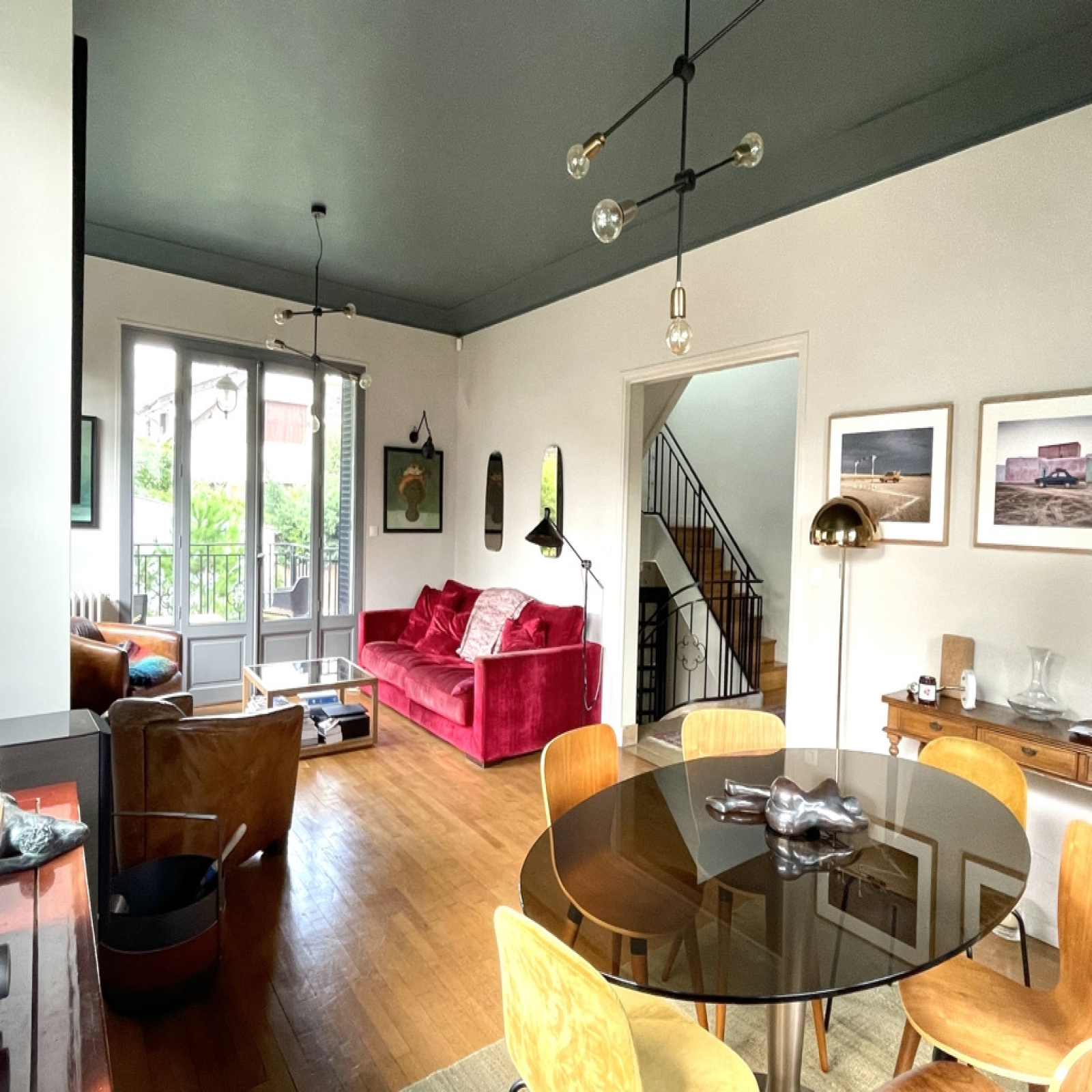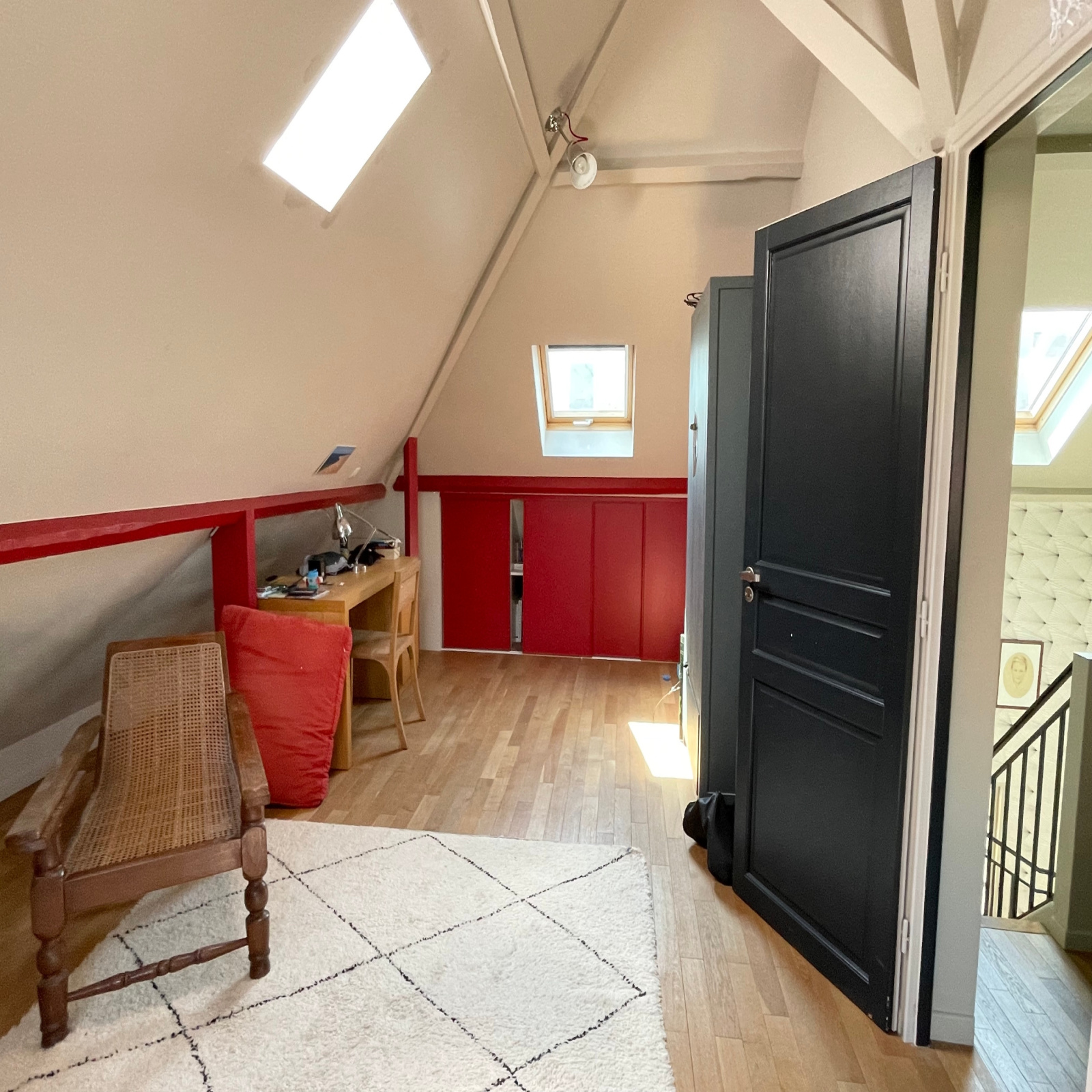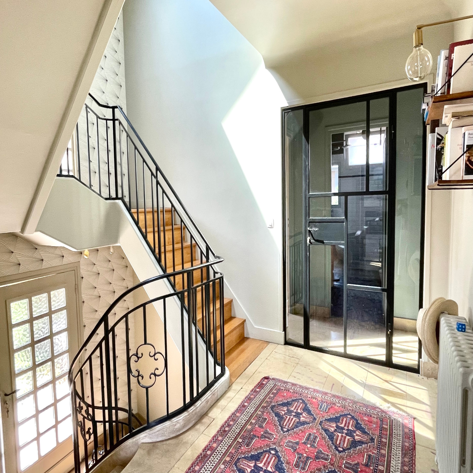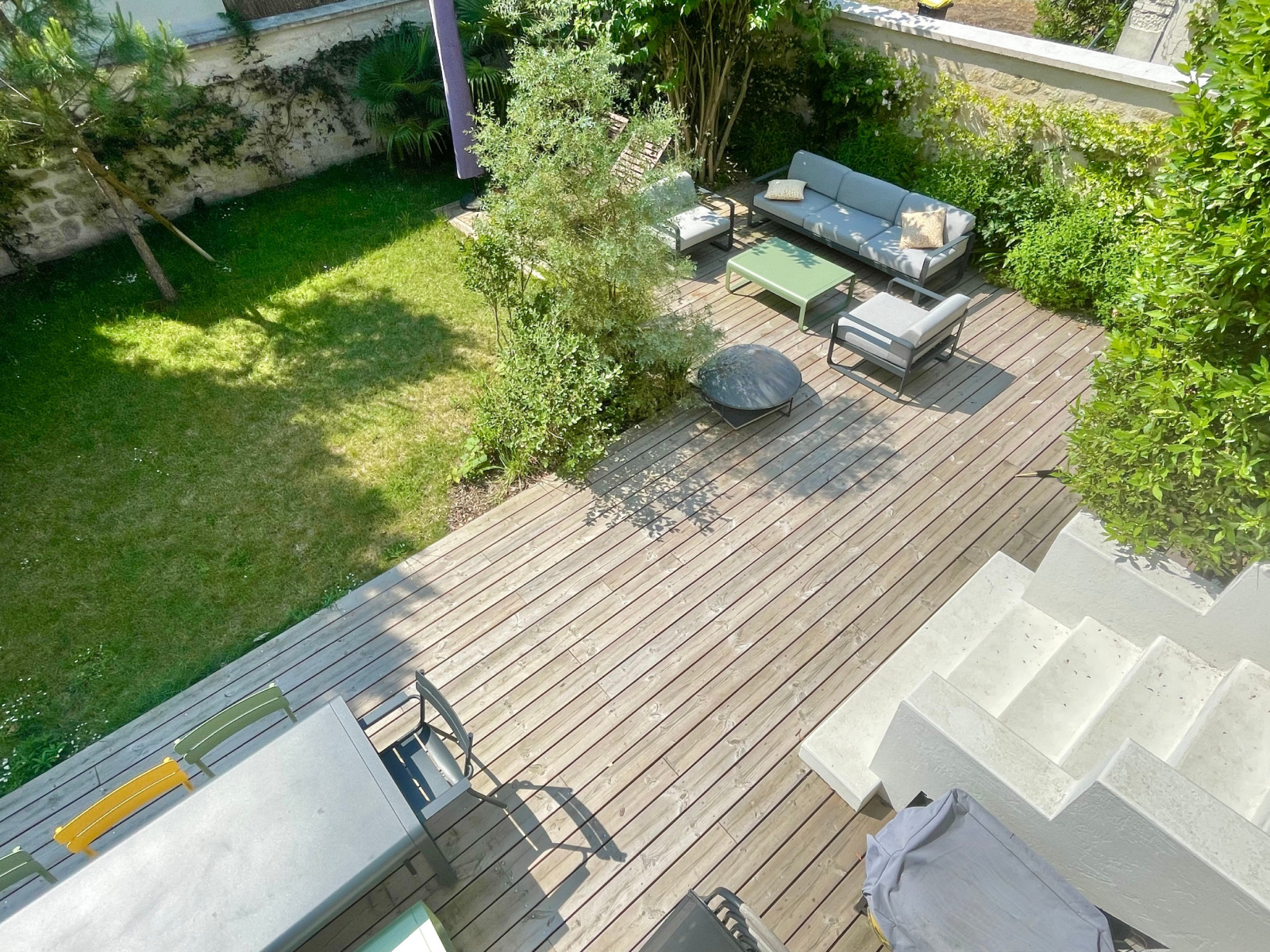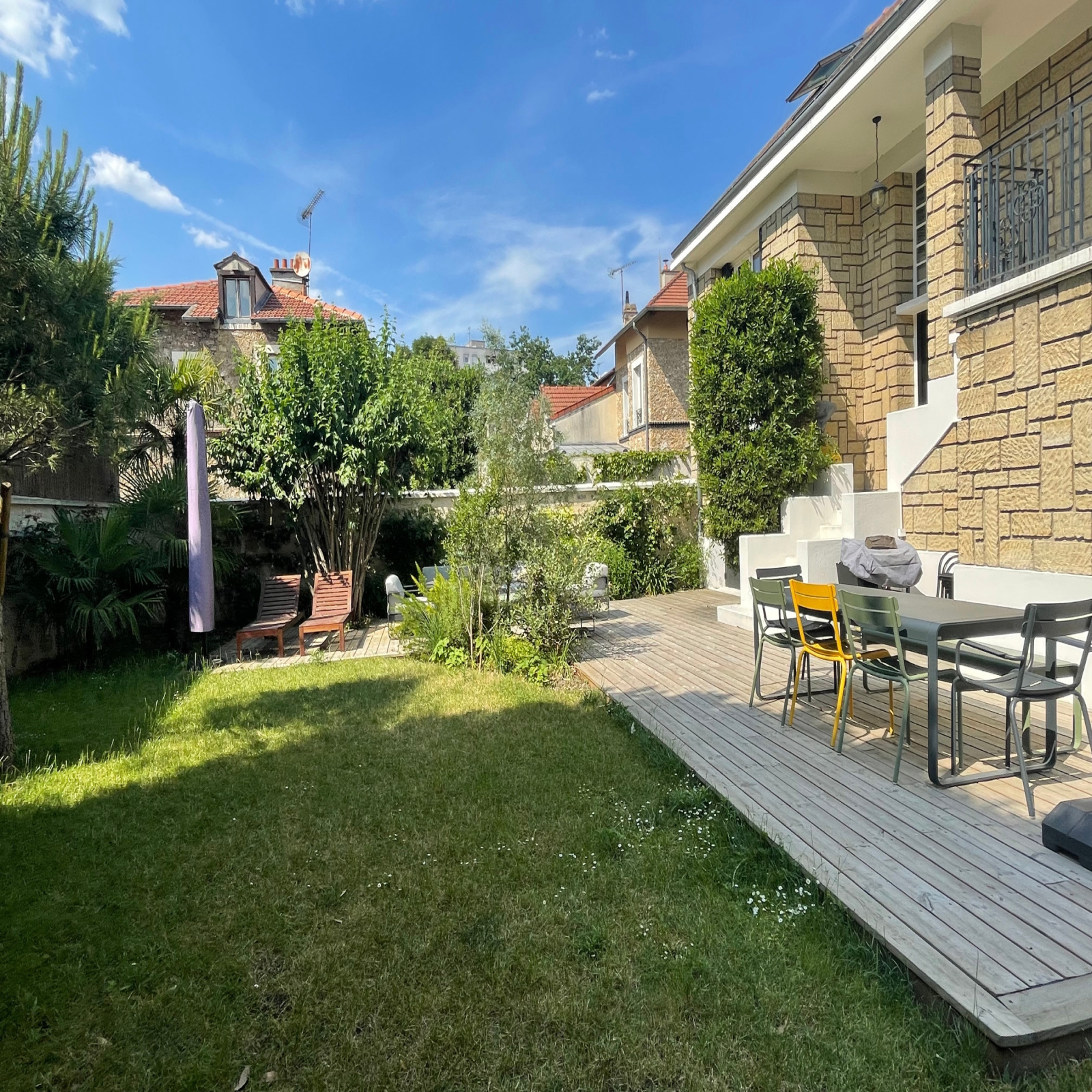 EXCLUSIVITE. RARE. Située dans un quartier très calme, résidentiel et quasiment sans passage de voitures, à moins de 10 mn du centre ville, de la gare (St Lazare en 11 mn), des écoles, Belle maison familiale de 200 m2 implantée sur une parcelle de 470 M2. Vous serez séduit par l?atmosphère de ce lieu aux volumes généreux et où la lumière est omniprésente Rdc : Très spacieuse entrée desservant une chambre de plain-pied, salle de douche,wc. Accès buanderie, cave et garage. Escalier majestueux menant aux étages avec accès jardin. Au 1er : double séjour très lumineux, Est/Ouest avec balcon et terrasse dominant le jardin, cheminée. Cuisine dinatoire séparée (ouverture possible), Espace parental composé d?une belle chambre, salle d?eau et wc. Une autre chambre ou bureau Au second, 3 chambres, salle de bains et douche, wc. Le terrain de 470 m2 permet d?avoir un bel espace devant la maison de 100 m2 et un beau jardin arboré très ensoleillé derrière et sur le côté de 251 m2. La maison à la décoration soignée ne nécessite aucun travaux Garage double + 1 parking intérieur et un extérieur. Contact direct : Véronique de Lima. O6 61 61 04 05 RSAC de Nanterre sous le numéro 502 004 922