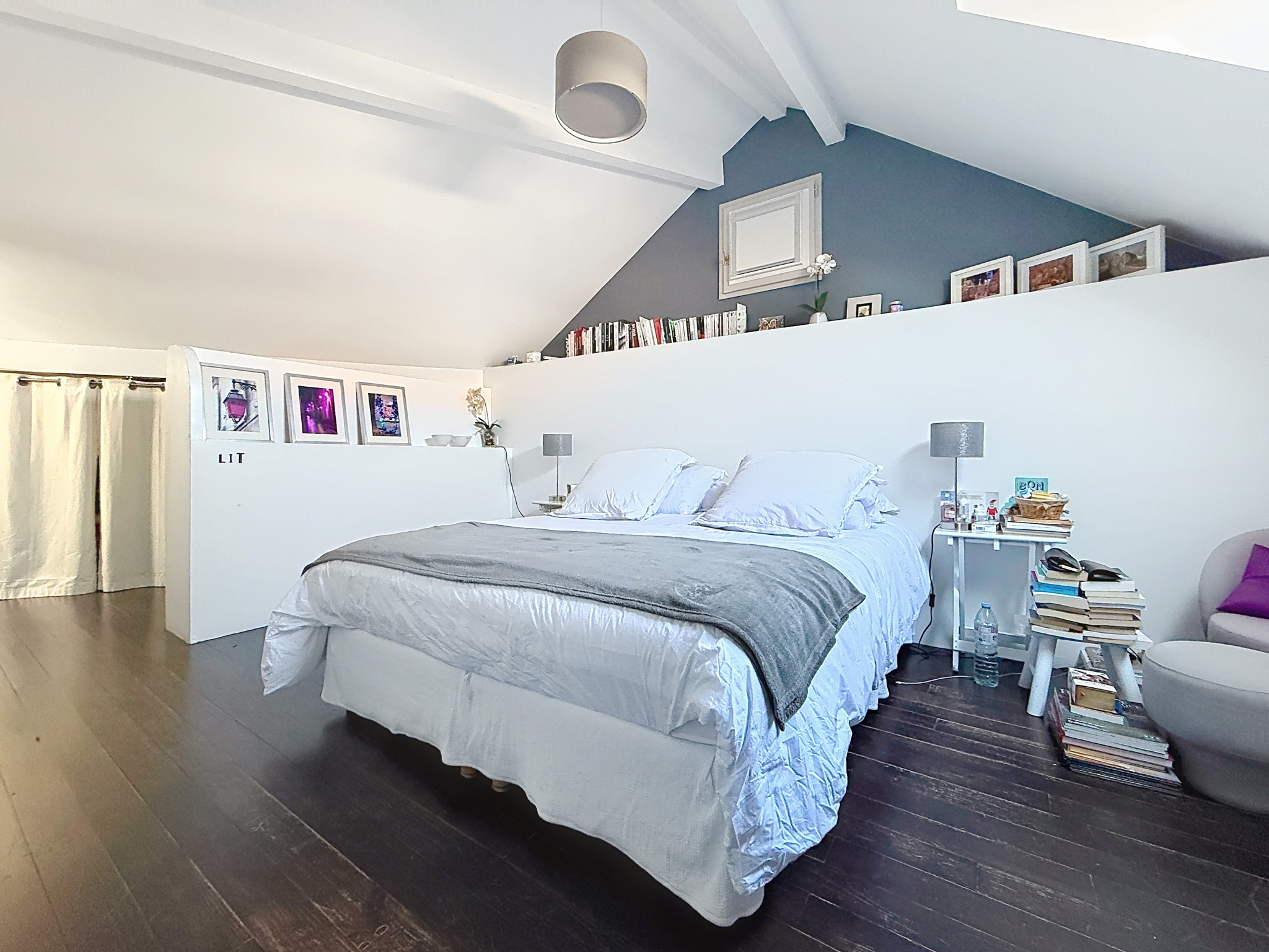 Le 2e étage accueille deux chambres supplémentaires, dont une suite avec salle d’eau et dressing.