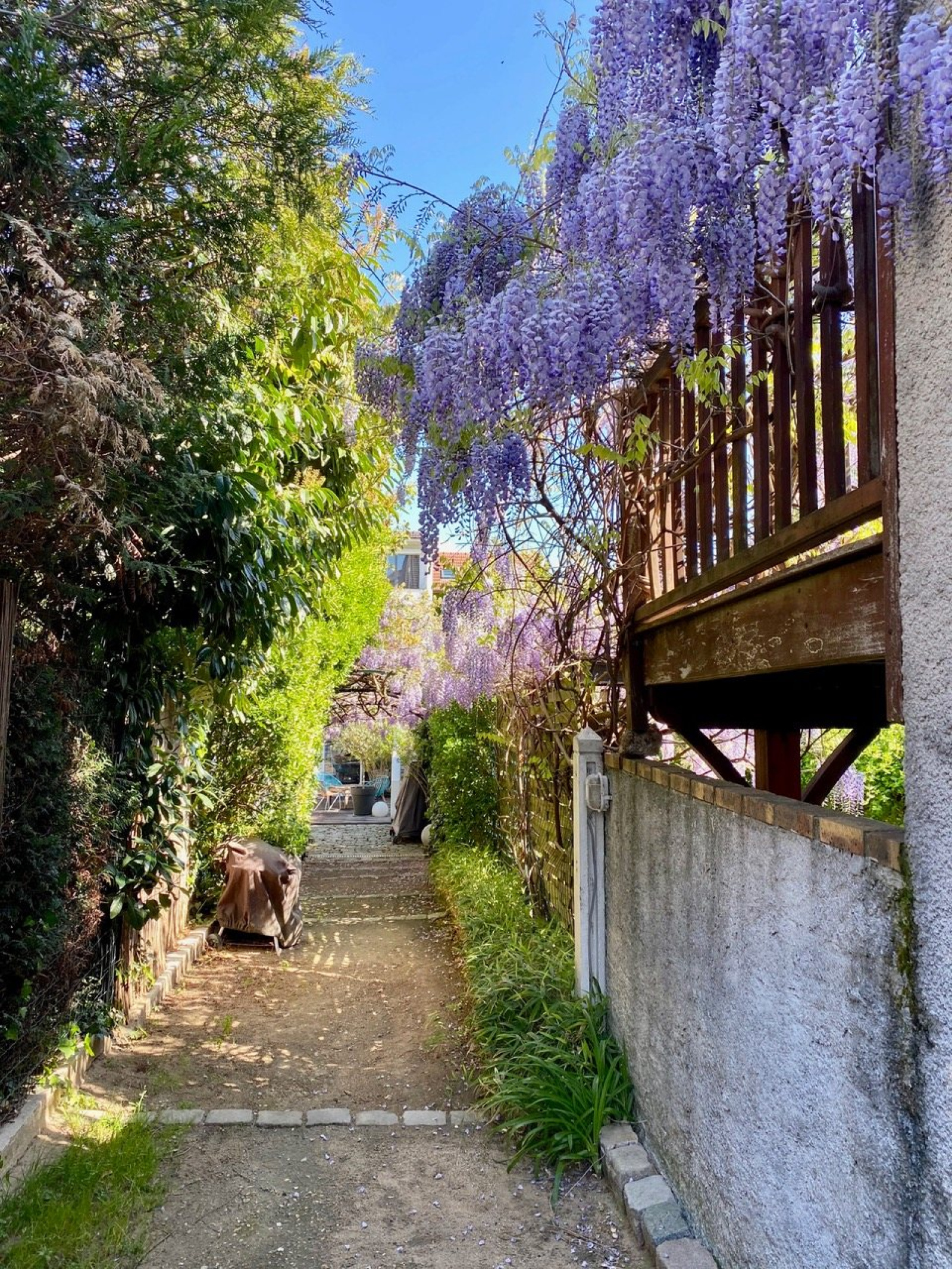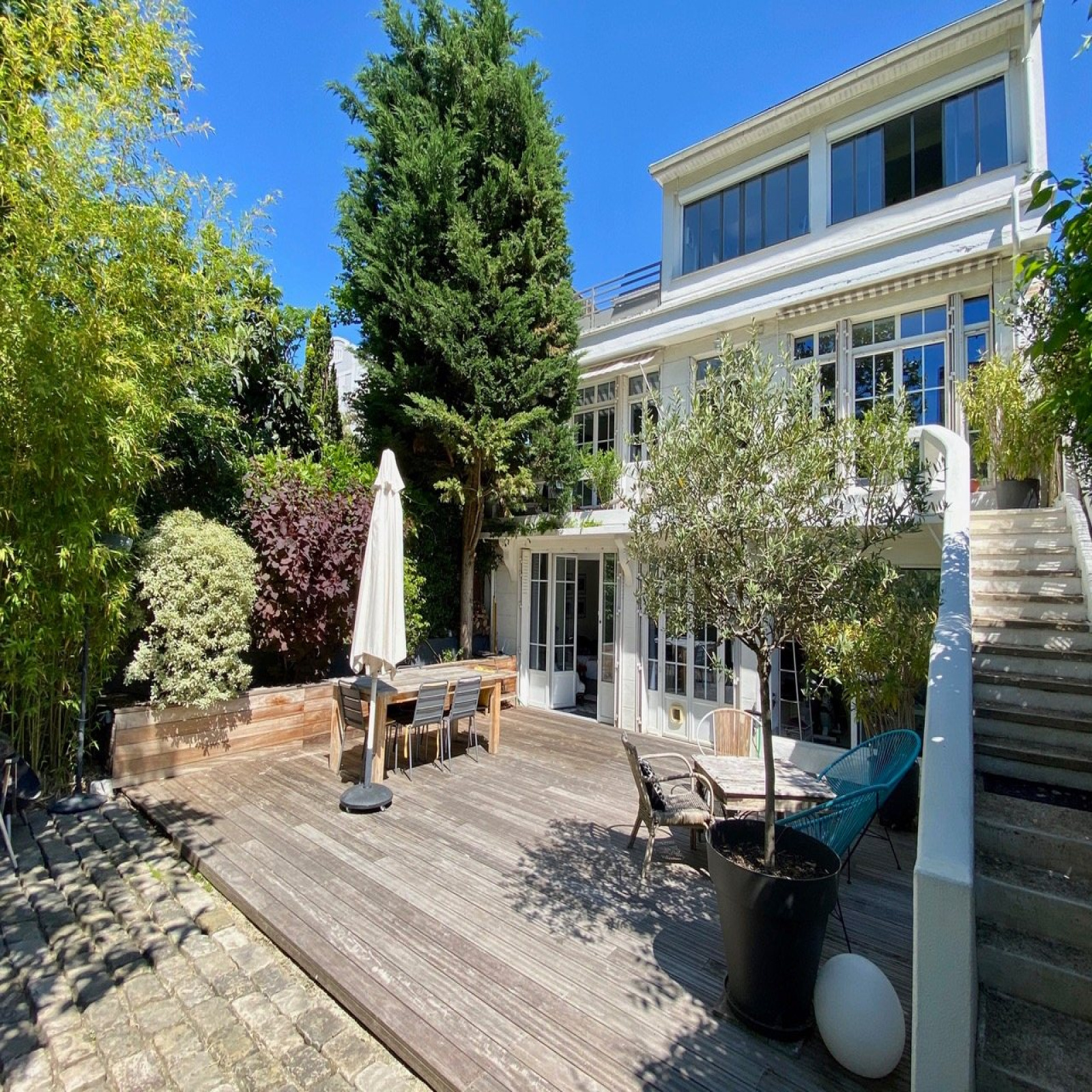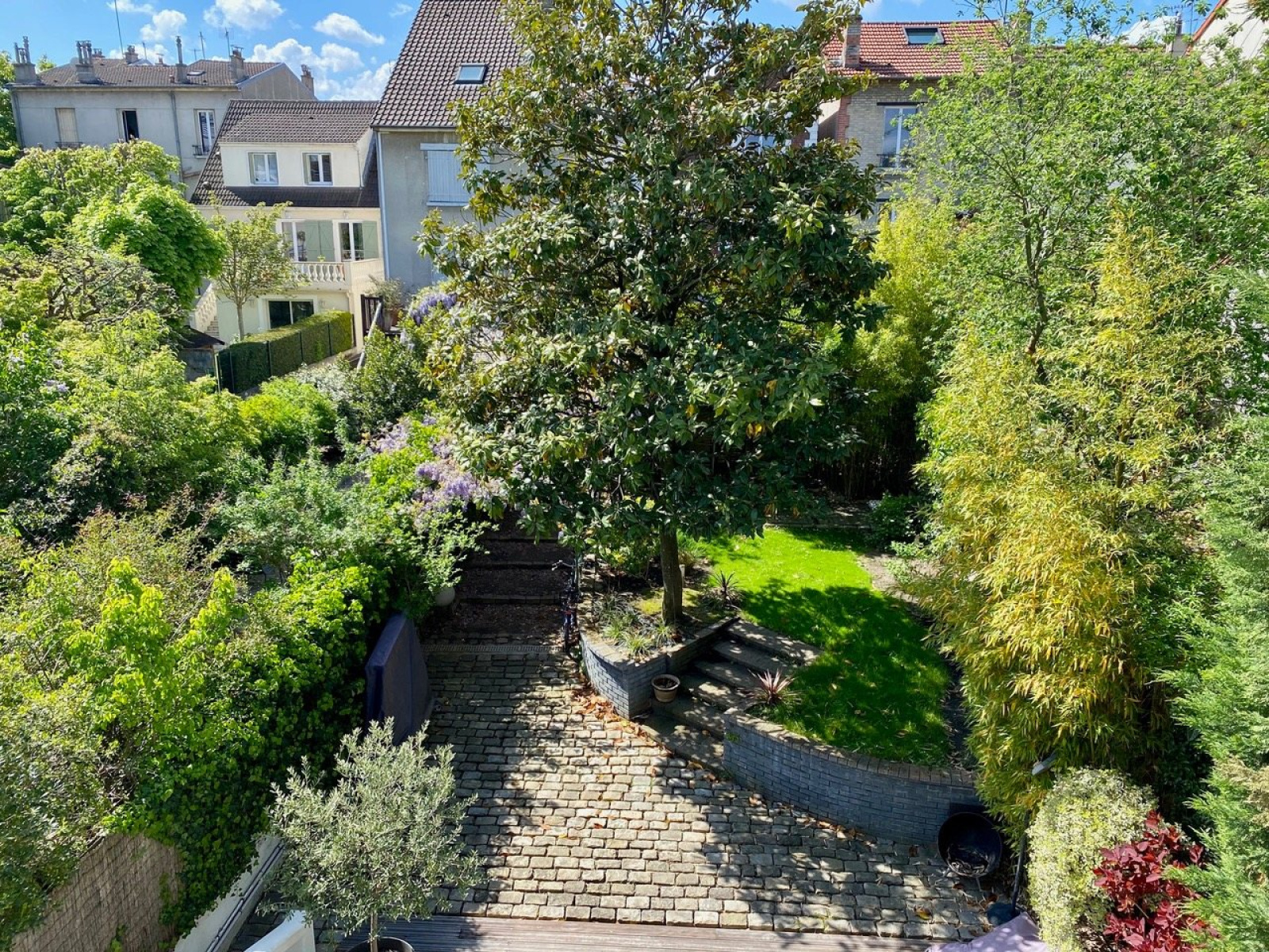 SOUS PROMESSE. HOCHE, au fond d'une allée bucolique, très au calme en second rang de parcelle, 3 mn gare (12 mn St Lazare) et centre ville, magnifique maison de caractère (env. 191 m2) sur terrain 363 m2 avec jardin paysagé et terrasse exposés plein sud. Elle offre une belle réception, un bureau ou family-room, une cuisine dinatoire, un wc. A l'étage, 3 chambres dont deux donnant accès à une terrasse, un dressing, une salle de bain avec wc. En rez-de-jardin, 2 chambres de plain-pied sur la terrasse et le jardin, salle d'eau avec wc, atelier / chaufferie, pièces de rangements. Possibilité parking 2 voitures. Ecoles Hoche et Collège Lakanal. Coup de coeur assuré pour les amateurs de charme et de calme.