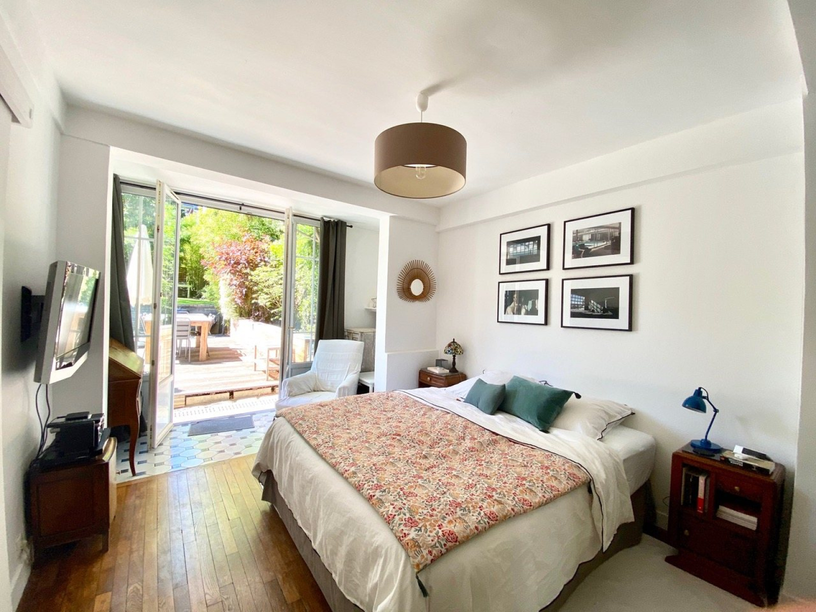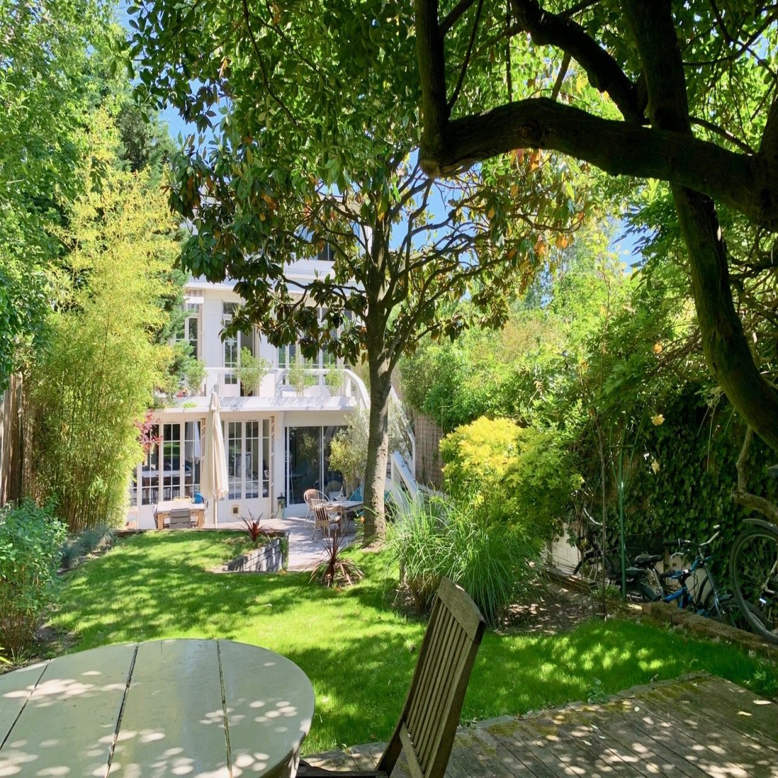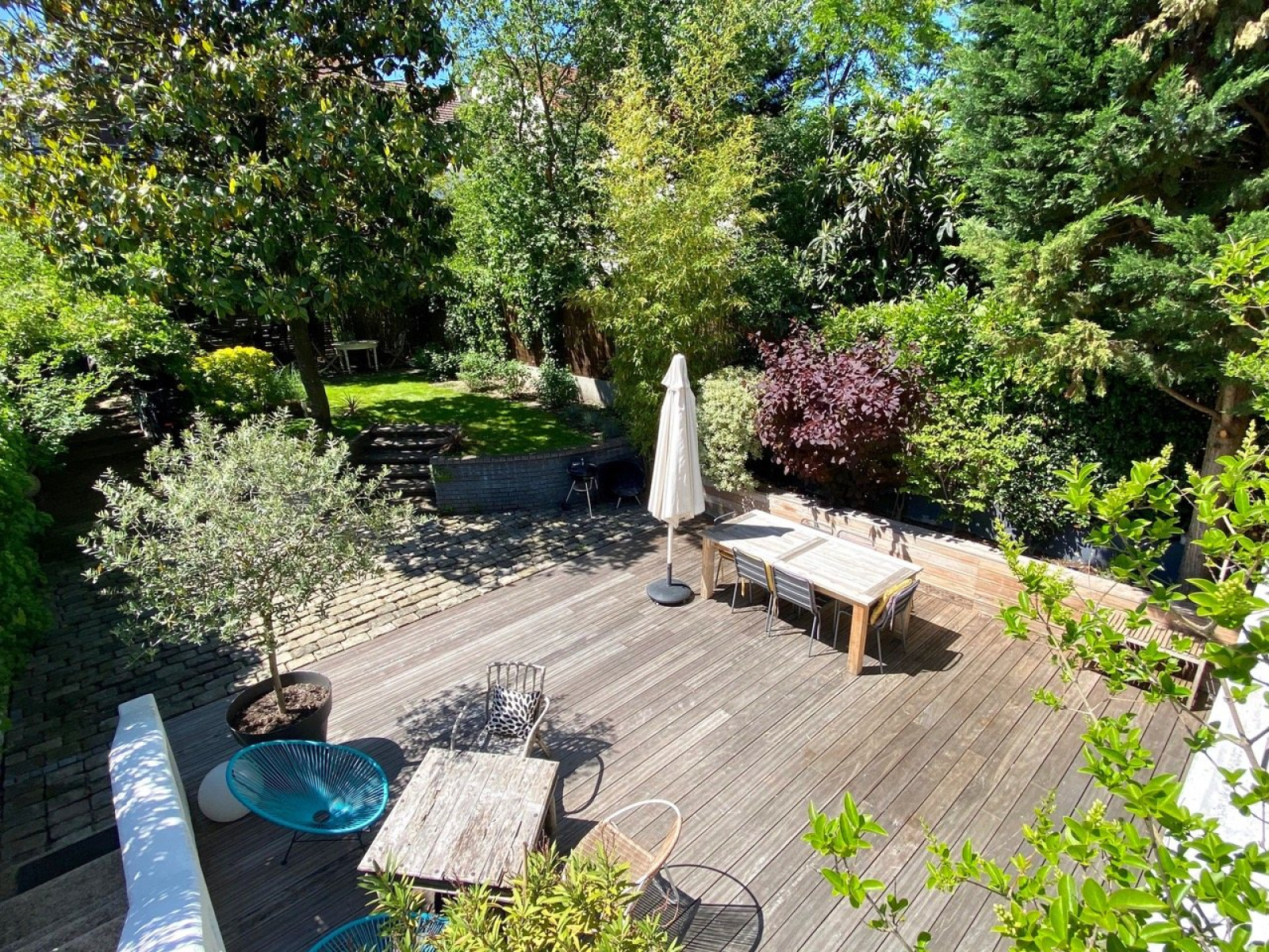 SOUS PROMESSE. HOCHE, au fond d'une allée bucolique, très au calme en second rang de parcelle, 3 mn gare (12 mn St Lazare) et centre ville, magnifique maison de caractère (env. 191 m2) sur terrain 363 m2 avec jardin paysagé et terrasse exposés plein sud. Elle offre une belle réception, un bureau ou family-room, une cuisine dinatoire, un wc. A l'étage, 3 chambres dont deux donnant accès à une terrasse, un dressing, une salle de bain avec wc. En rez-de-jardin, 2 chambres de plain-pied sur la terrasse et le jardin, salle d'eau avec wc, atelier / chaufferie, pièces de rangements. Possibilité parking 2 voitures. Ecoles Hoche et Collège Lakanal. Coup de coeur assuré pour les amateurs de charme et de calme.