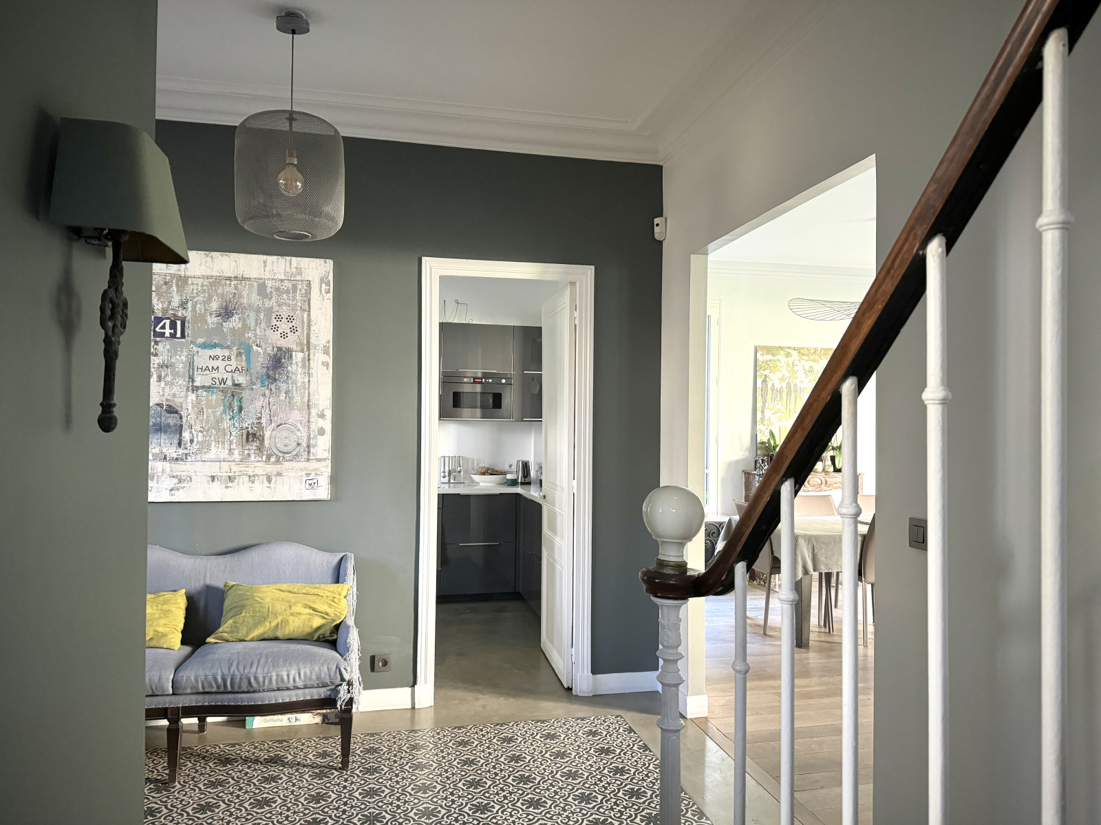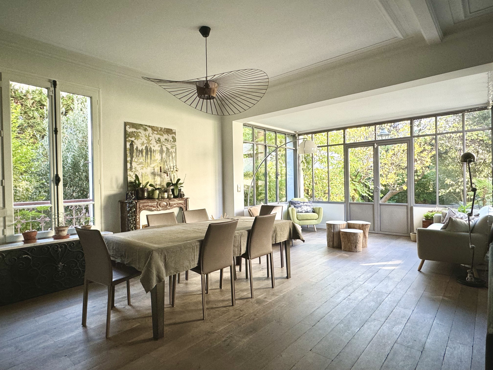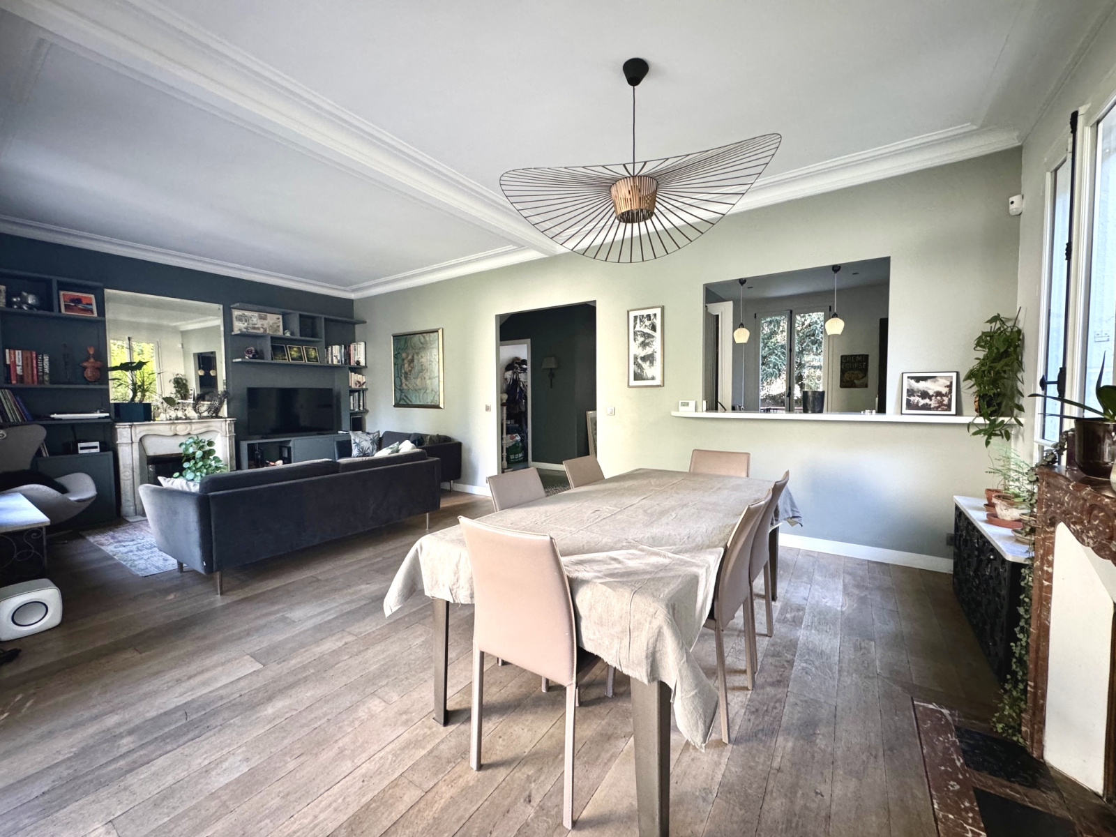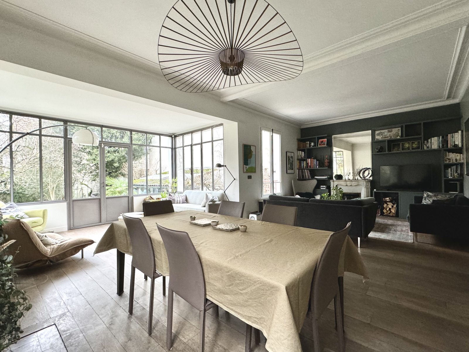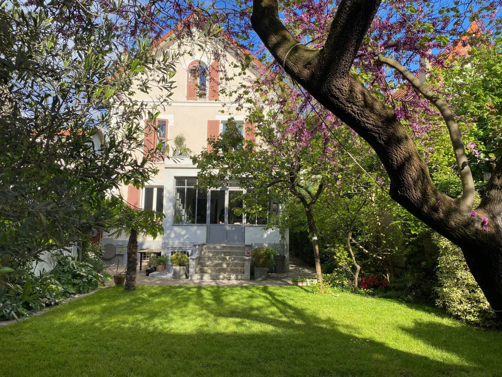 RARE. Gare des Vallées (7mn) et à proximité immédiate de La Garenne-Colombes, des commerces, des bonnes écoles (collège Lakanal). Élégante maison familiale d’environ 210 m2 édifiée sur un terrain de 610 m2. Elle s'ouvre sur un jardin d'accueil avec des arbres remarquables, à l'arrière de la maison un superbe jardin paysagé sans vis-à-vis. Entièrement rénovée et parfaitement distribuée, elle allie le charme de l’ancien à une décoration soignée et contemporaine.Au RDC, elle propose, une belle entrée avec vestiaire, une triple réception de 44 m2 baignée de lumière et ouverte sur un beau jardin arboré et paysagé, une cuisine familiale, aménagée et équipée. Au 1er étage, un palier dessert 3 chambres, dont une avec accès à une terrasse donnant sur le jardin, une salle de bains avec douche et wc. Au 2nd étage, deux grandes chambres avec chacune sa salle d'eau une très belle hauteur sous plafond, wc. Le sous-sol aménagé, avec de nombreux rangements propose une salle de jeux ou home cinéma, une buanderie, une pièce de rangements et une cave à vin. Une dépendance aménagée en bureau, un abri de jardin et un garage complètent ce bien de qualité. Cette maison exceptionnelle se distingue par son charme indéniable, ses extérieurs, sa distribution, ses volumes, sa luminosité et sa localisation privilégiée. Elle saura combler une famille.