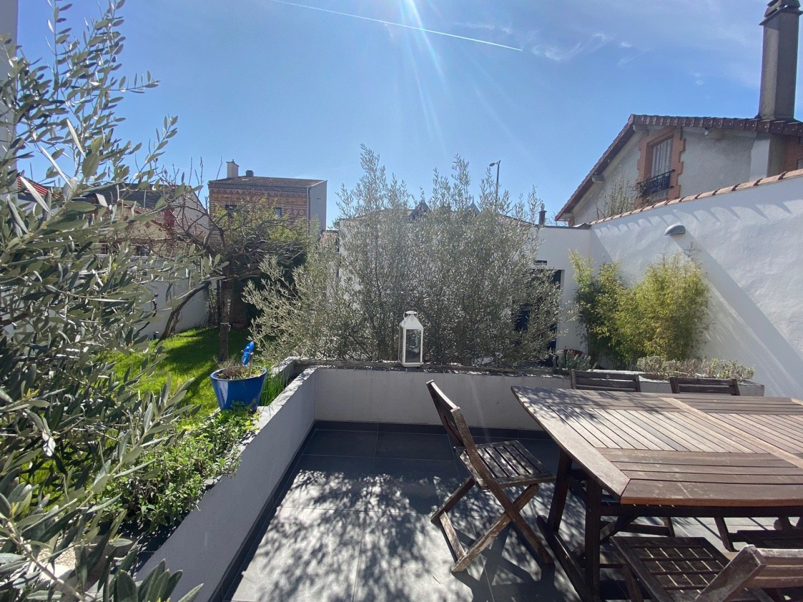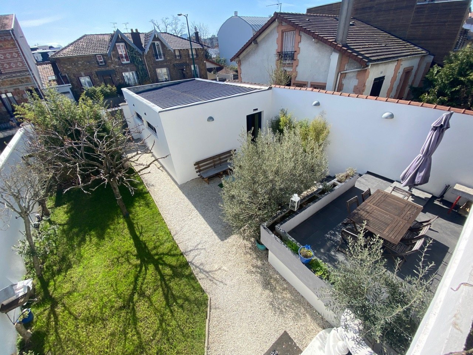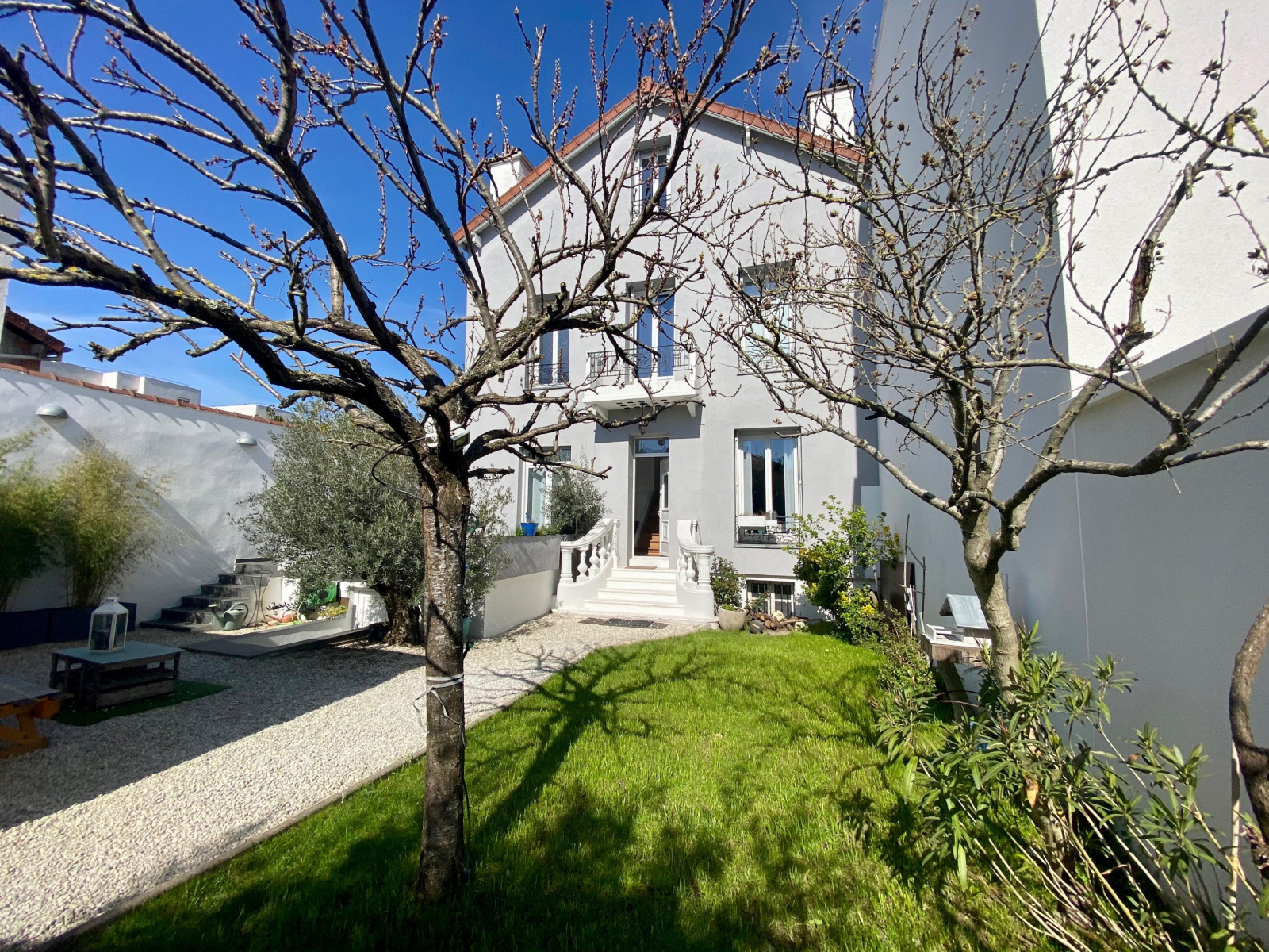 VENDUE. Proche T2, Gare de la Garenne Colombes, dans une jolie rue calme, très belle maison familiale d'env 180 m2, entièrement rénovée, alliant le charme de l'ancien à une extension contemporaine. Sur un terrain d'env 305m2 , elle offre au rez de chaussée, un petit salon avec placards, une salle à manger avec cheminée, et une cuisine ouverte aménagée. En contrebas, sous une très belle verrière plein ciel, un grand salon avec une deuxième cheminée. Au dessus de la cuisine, une chambre et sa mezzanine. Au 1er étage, un pallier dessert une chambre et un grand dressing/ bureau attenant ainsi qu'une salle de bains avec douche et wc. Au 2ème étage, 3 chambres dont 2 en enfilade. Sous-sol total avec belle cave à vin voutée et pièces de rangements. Sur le devant de la maison, à l'abri des regards et exposé plein sud, une grande terrasse et un beau jardin. Un garage pouvant accueillir 2 voitures complète ce bien. Coup de coeur pour cette maison aux volumes exceptionnels.