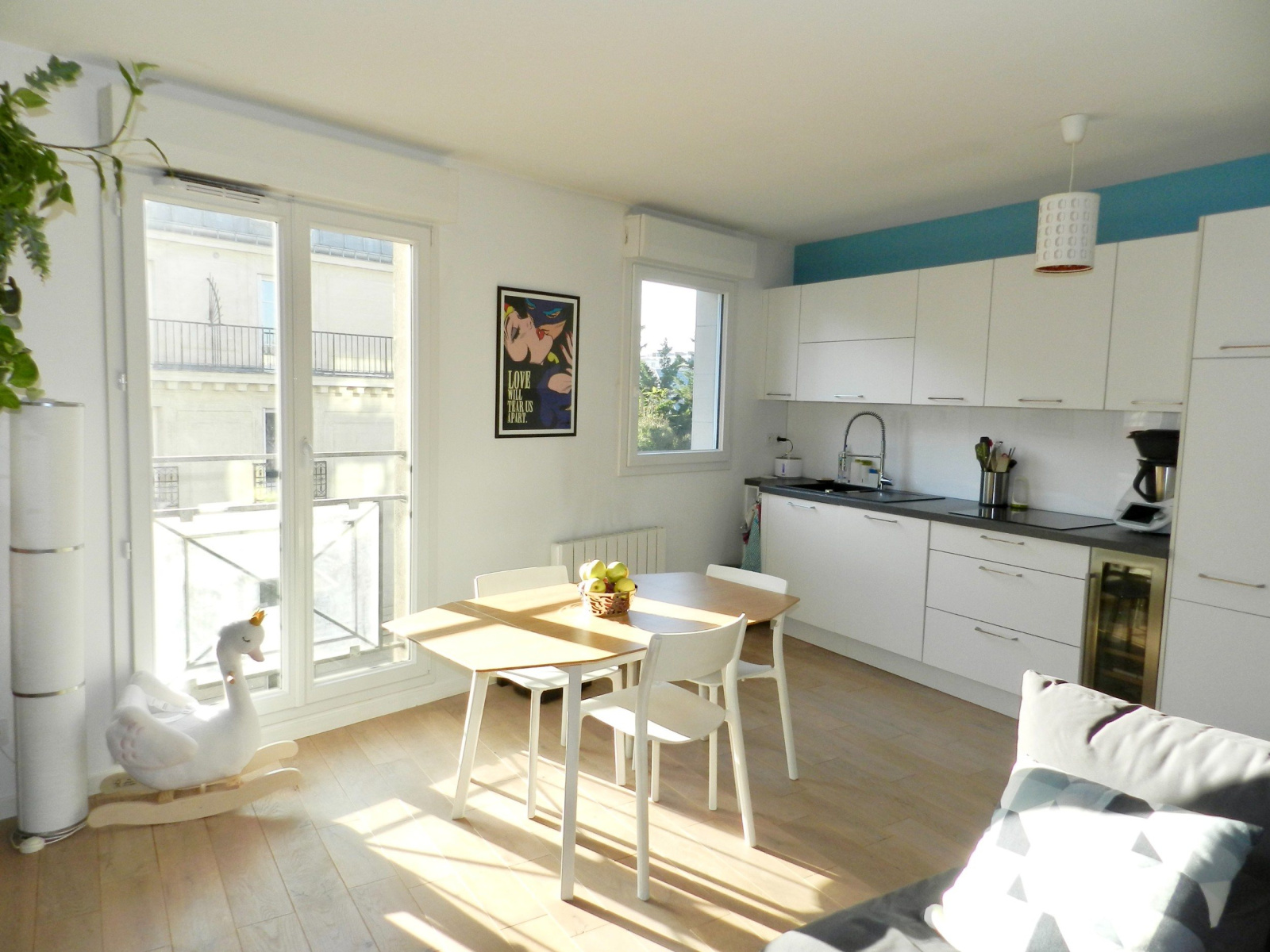 SOUS OFFRE. GARE D?ASNIERES. A proximité immédiate de la gare, des bonnes écoles (publics et privées) et des commerces, au 4ème étage (avec ascenseur) d?un immeuble de 1999, bel appartement 3P de 68 m². Entièrement rénové en 2016, il se compose : d?une entrée avec placards donnant directement sur le séjour et sa cuisine ouverte (aménagée et équipée) de 32m2, de deux chambres (15 et 11 m2) dont une donnant sur des jardins arborés, d'un dégagement avec placards, d?une salle de bains et d?un wc indépendant. Une cave complète le bien et possibilité d?acquérir une place de parking au sous-sol en sus. Très bonne sectorisation scolaire (Réjane, Simone Veil et Truffaut) et St Joseph et Ste Geneviève accessibles à pied. L?emplacement très recherché, la luminosité et l?état impeccable en font un produit « clefs en mains ». Copropriété de 62 lots (Pas de procédure en cours). Charges annuelles : 1626 euros. Contact direct : Caroline Langellier - Agent commercial O6.64.19.41.82