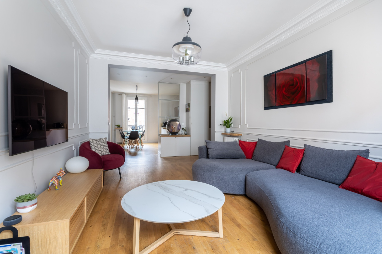 BAC / BOURGUIGNONS. Idéalement placé à 5mn de la gare de Bois-Colombes et de tous les commerces de la rue des Bourguignons, bel appartement familial d?env.100 m² entièrement rénové et offrant tout le charme de l?ancien. Au 2ème étage d'un immeuble 1930 avec gardien et ascenseur, il se compose d?une entrée avec placards, d?un bel espace de vie d?environ 45 m2 avec cuisine ouverte sur la salle à manger et séjour, de 3 belles chambres, d?une agréable salle de bains avec douche et baignoire, wc séparés. Une cave complète ce bien. L'emplacement au c?ur du quartier Bac/Bourguignons, l'état général impeccable et la distribution de cet appartement en font en véritable produit coup de c?ur ! Copropriété de 54 lots principaux. Charges annuelles : 3 936 euros. Contact direct : 06. 64.19.41.82