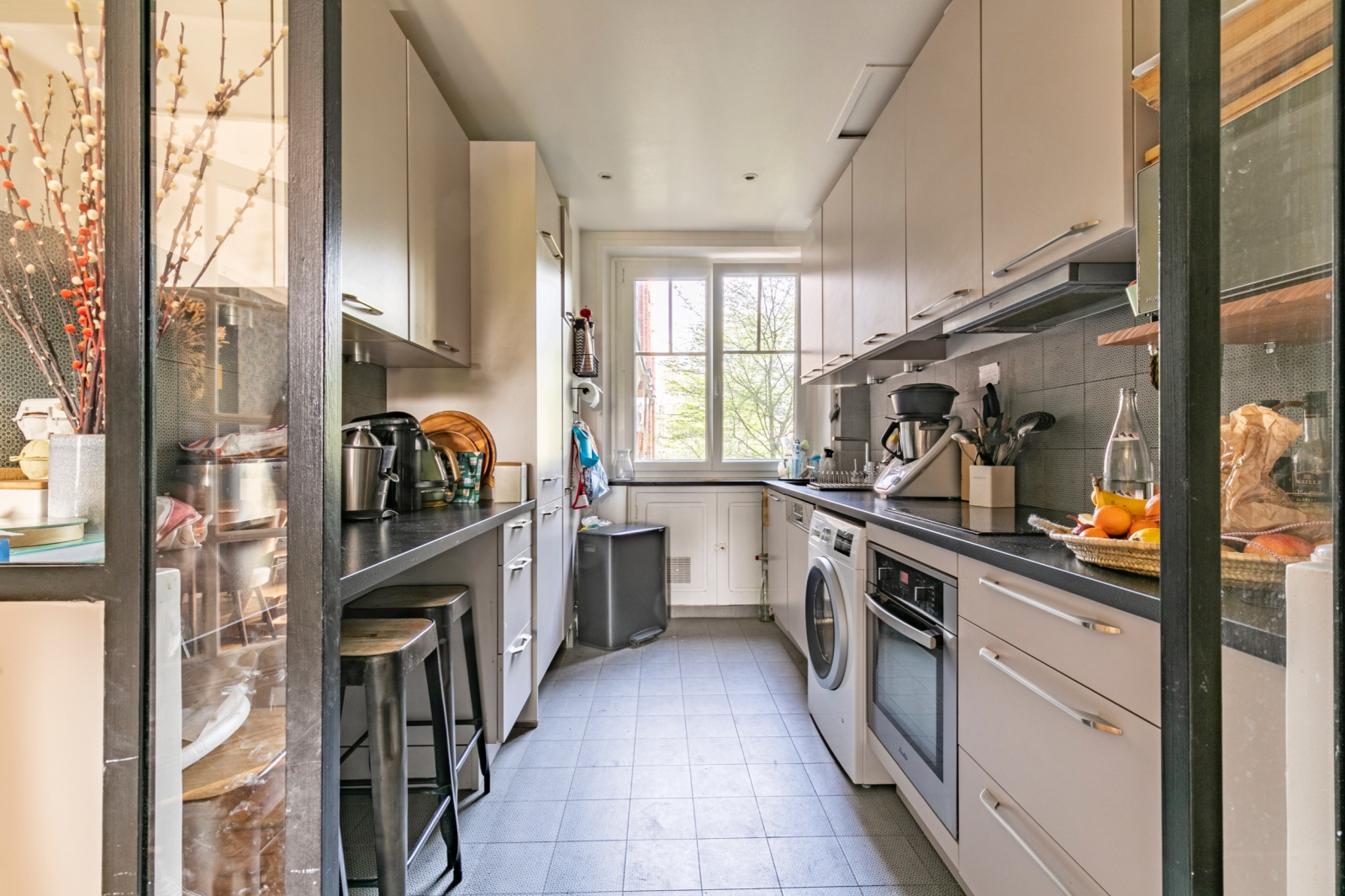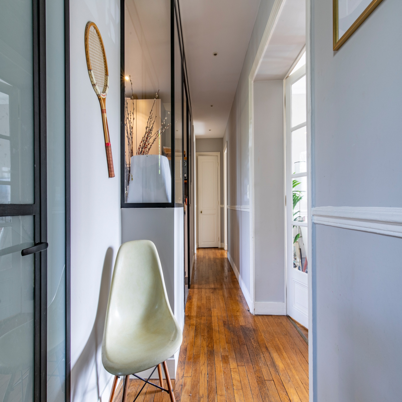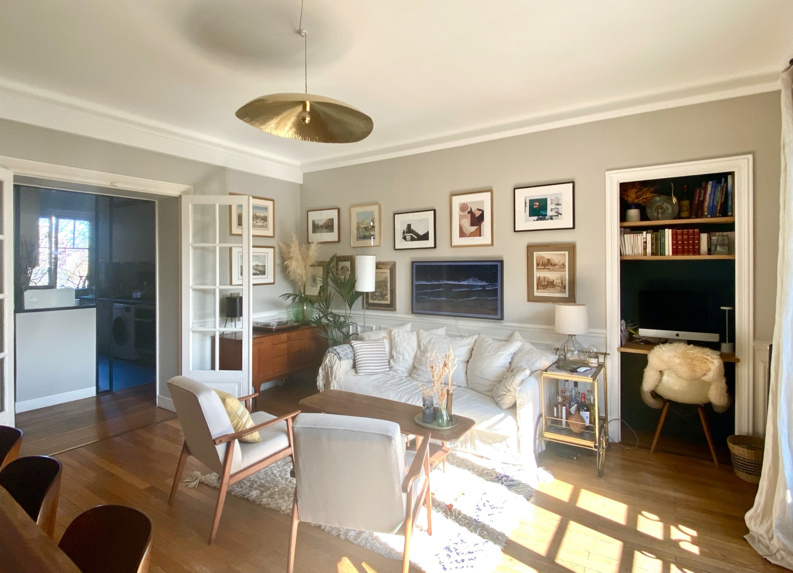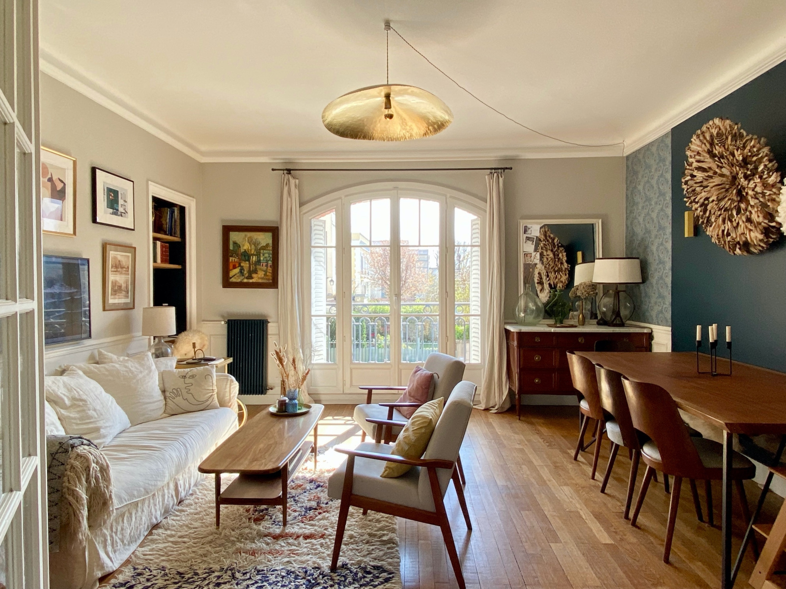 VENDU. BECON. Idéalement situé entre le Pt de Levallois et la gare d'Asnières, au sein d'une copropriété 1930 très recherchée avec gardienne, cour intérieure arborée et parking, magnifique appartement familial de 4 P refait en 2021 offrant tout le charme de l'ancien et une décoration soignée: Entrée avec grands rangements, cuisine équipée et aménagée avec verrière, séjour lumineux exposé Sud sans vis-à-vis avec vue dégagée sur jardin, 3 grandes chambres chacune avec dressing (possibilité double séjour 40 m2+ 2 chambres), belle salle de bain, 2 WC, cave, parking en sous-sol. Sectorisation Mermoz et Collège Les Bruyères. Copropriété de 40 lots, charges annuelles 3100 euros, aucune procédure en cours. Local vélo/poussettes. L'emplacement privilégié au pied du Parc des Couronnes en font un bien idéal pour une famille avec de jeunes enfants. Contact direct: O6.61.57.40.88