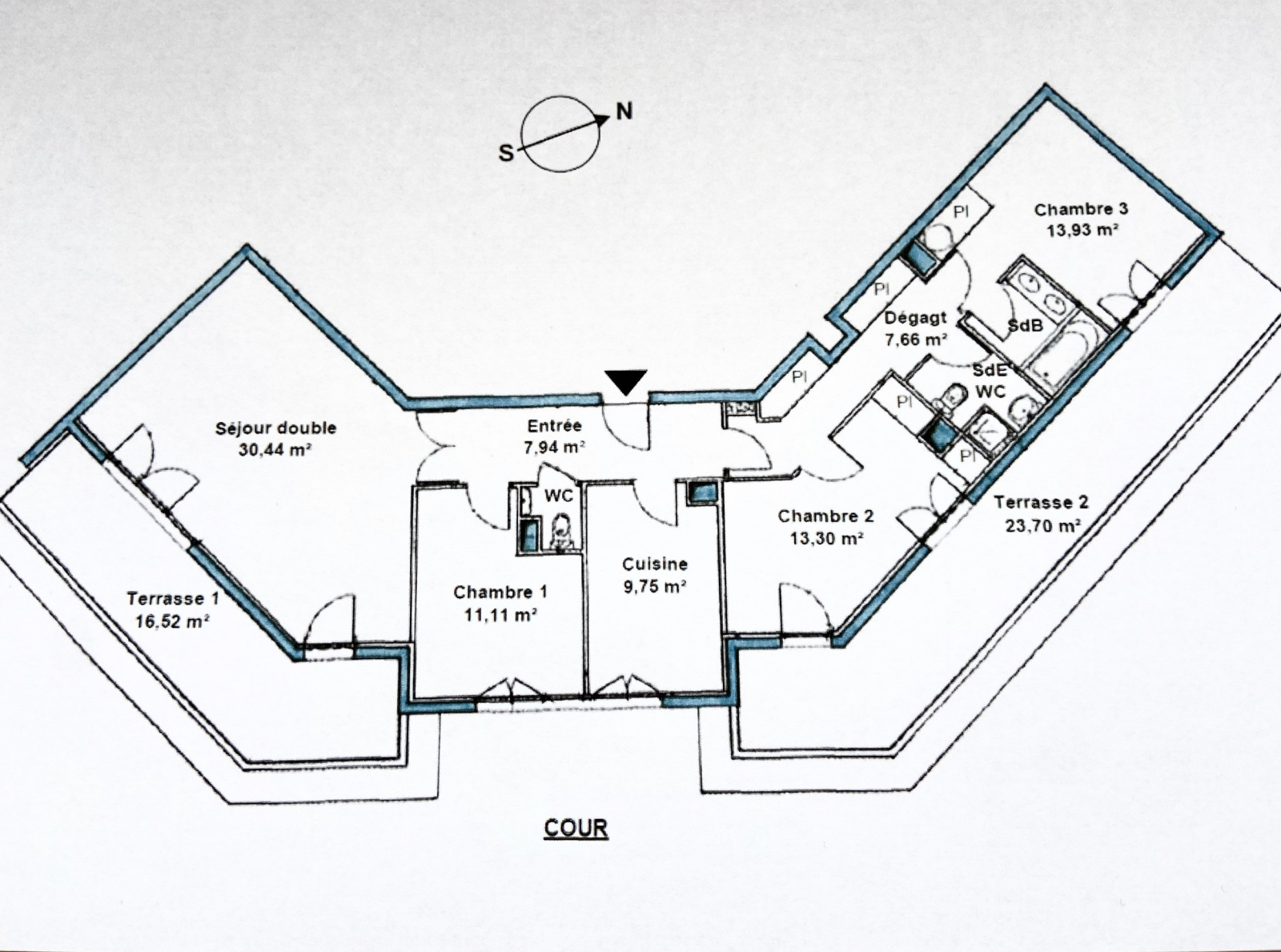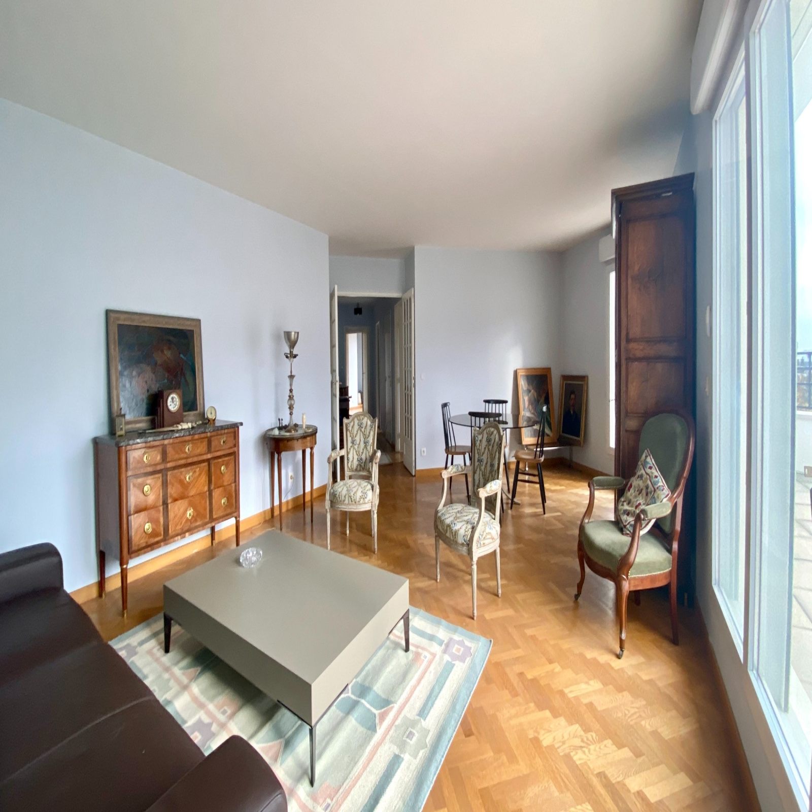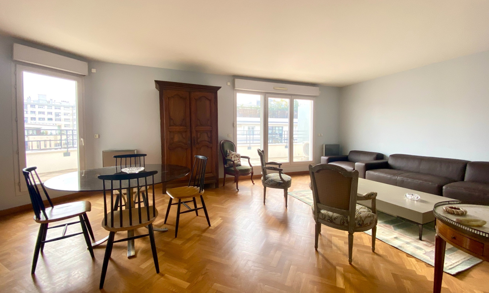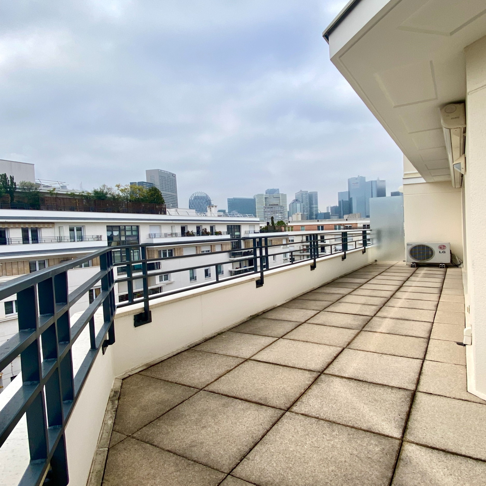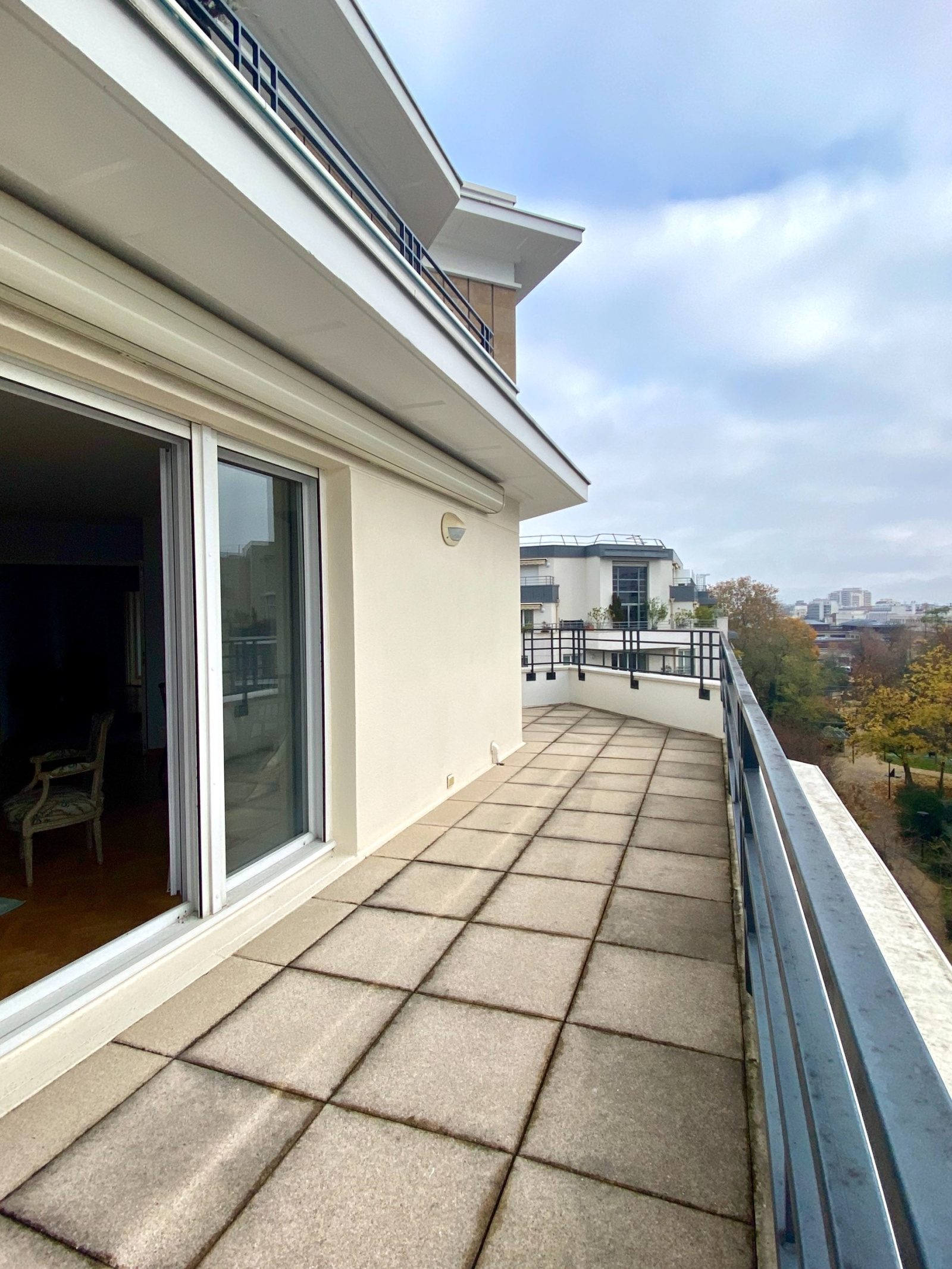 VENDU. JARDIN DES TOURNELLES. 4mn Gare. Au 6ème et avant-dernier étage d'une copropriété de grand standing de 2003 avec gardien, magnifique appartement familial de 103m2 situé uniquement sur jardins, donc très au calme, offrant 2 TERRASSES totalisant 40 m2: Entrée, cuisine dinatoire équipé et aménagée, grand séjour/salle à manger de 30 m2 très lumineux car exposé plein SUD, ouvrant sur une terrasse de 16 m2 avec vue sur La Défense et le jardin des Tournelles. 3 chambres, dont une suite parentale avec sa salle de bains attenante, et dont 2 ayant accès à une seconde terrasse de 24 m2, salle d'eau avec WC, et WC séparés. L'appartement est équipée de climatisation réversible. Un box et une cave en sous-sol complètent le bien. Copropriété de 94 lots principaux, charges annuelles 2820 €, aucune procédure en cours. Contact Direct:O6.61.57.40.88