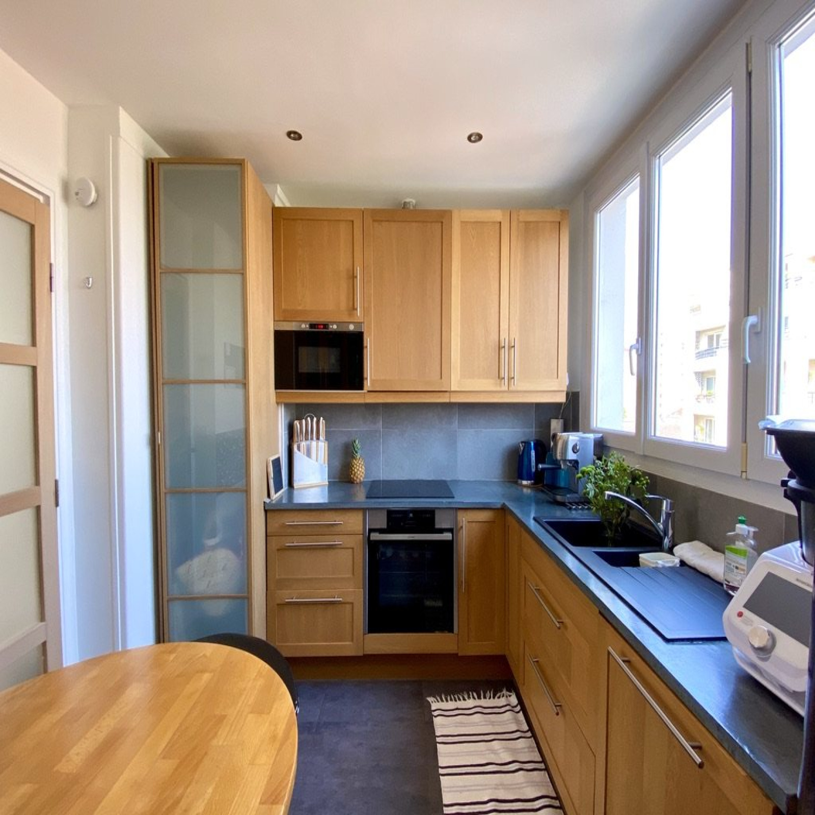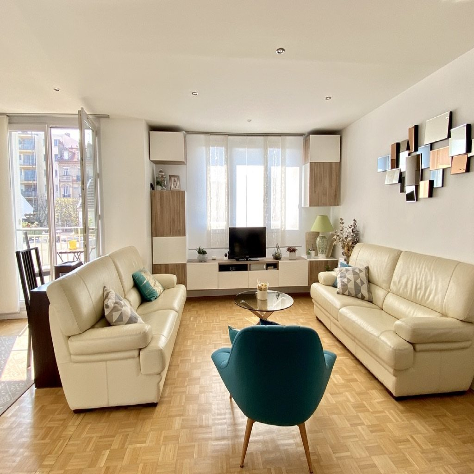 GARE à 5mn. Idéalement placé proche de toutes commodités, mais bénéficiant du calme d'une voie privée sans circulation, bel appartement 4P de 75 m2 rénové il y a 2 ans situé au 2ème étage: Entrée, belle cuisine dinatoire parfaitement aménagée avec cellier/ buanderie attenante, double séjour très lumineux ouvrant sur un balcon Sud avec vue dégagée, 2 chambres avec dressing (3ème chambre possible), belle salle d'eau, placard, WC séparés. Une très grande cave complète le bien, location box dans la résidence possible. Taxe foncière et charges très raisonnables. L'emplacement idéal, le calme et l'excellent état général en font un vrai coup de coeur.