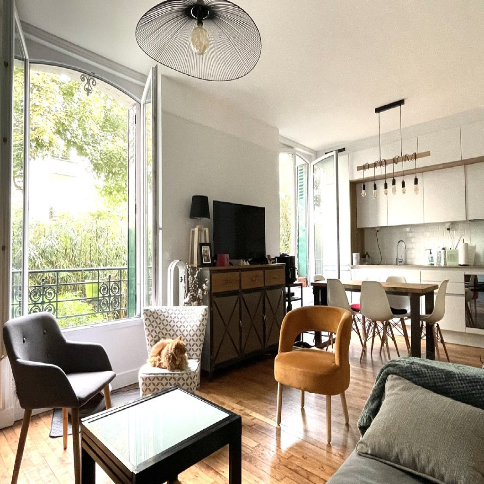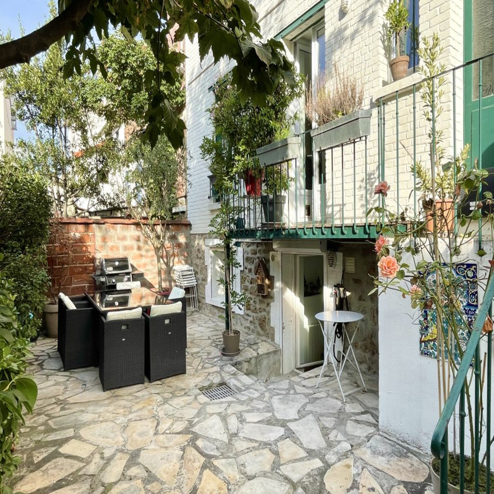 VENDU. TRES RARE. CENTRE (quartier Coeur de ville), dans une rue calme, à 5 mn de la gare (trajet de 10 min en train pour Saint-Lazare), proche des commerces et de la Défense. Ce DUPLEX de 75 m2 avec son jardin terrassé et arboré de 42 m2 exposé plein sud et très protégé auquel s'ajoute un petit jardinet côté rue, laisse à penser que nous sommes dans UNE MAISON. Cet appartement plein de charme a conservé ses attributs d?origine des années 30 : parquet, cheminée fonctionnelle. Le rdc surélevé est composé d?un double séjour, cuisine ouverte, d?une chambre, d?une grande salle de bains, wc indépendants. En rez-de-jardin 2 chambres d?enfants, wc. L?accès au jardin s?effectue par le rdc et le rdj. Grande cave. Très bon état général, fenêtres double vitrage. Décoration soignée et au goût du jour. Entièrement refait en 2019. Petite co-pro de 3 propriétaires, très bien entretenue, les parties communes ont été refaites récemment. RAS sur la dernière AG. Pas de voisins latéraux, très bonne isolation phonique. Charges : 158 €/mois, TF : 490 €/an. Parking en location en face. Coup de coeur assuré pour ce petit bijou. Contact direct : Véronique de Lima : vdelima@homeandco.fr