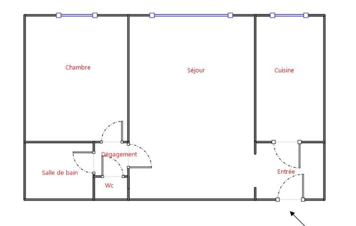 Il se compose d'une entrée avec placard, d'une pièce de vie lumineuse, d'une cuisine séparée, non équipée, avec possibilité d’ouverture sur le séjour, d'une chambre, d'une salle de bains, de wc séparés.