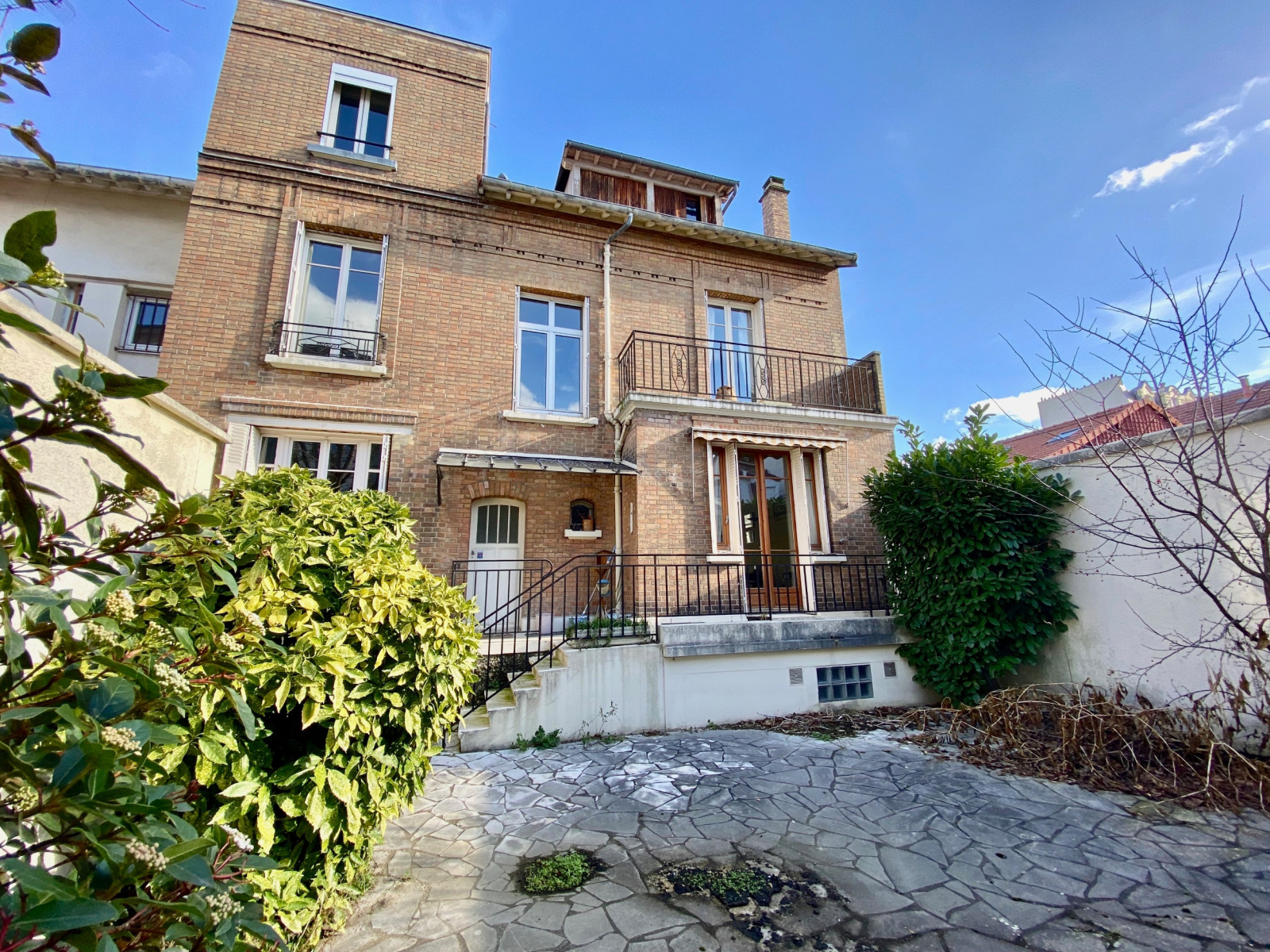 VENDUE. TRES RARE - Idéalement située, dans une rue calme, proche des commerces (8 mn) et des transports (8 mn gare de Courbevoie), belle demeure familiale de 223 m2 sur un terrain de 215 m2. Vous serez séduits par son charme et sa distribution. Dès le RDC, un grand hall d'entrée dessert un double séjour d'env 38 m2 donnant accès au jardin, un bureau (ou chambre), un cellier et une cuisine séparée dinatoire donnant sur un balcon et jardin, un wc. Au 1 er étage, grand palier, 3 grandes chambres dont une avec un point d'eau et une avec un balcon, une salle de bain avec douche, un wc . Au 2ème étage : 2 chambres avec salle d'eau, un bureau ou chambre enfant. Sous-sol total avec pièce de rangement, garage, buanderie. Jardin d'accueil à l'avant de la maison et jardin terrassé à l'arrière. Coup de coeur assuré pour cette maison au cachet exceptionnel et offrant un énorme potentiel.