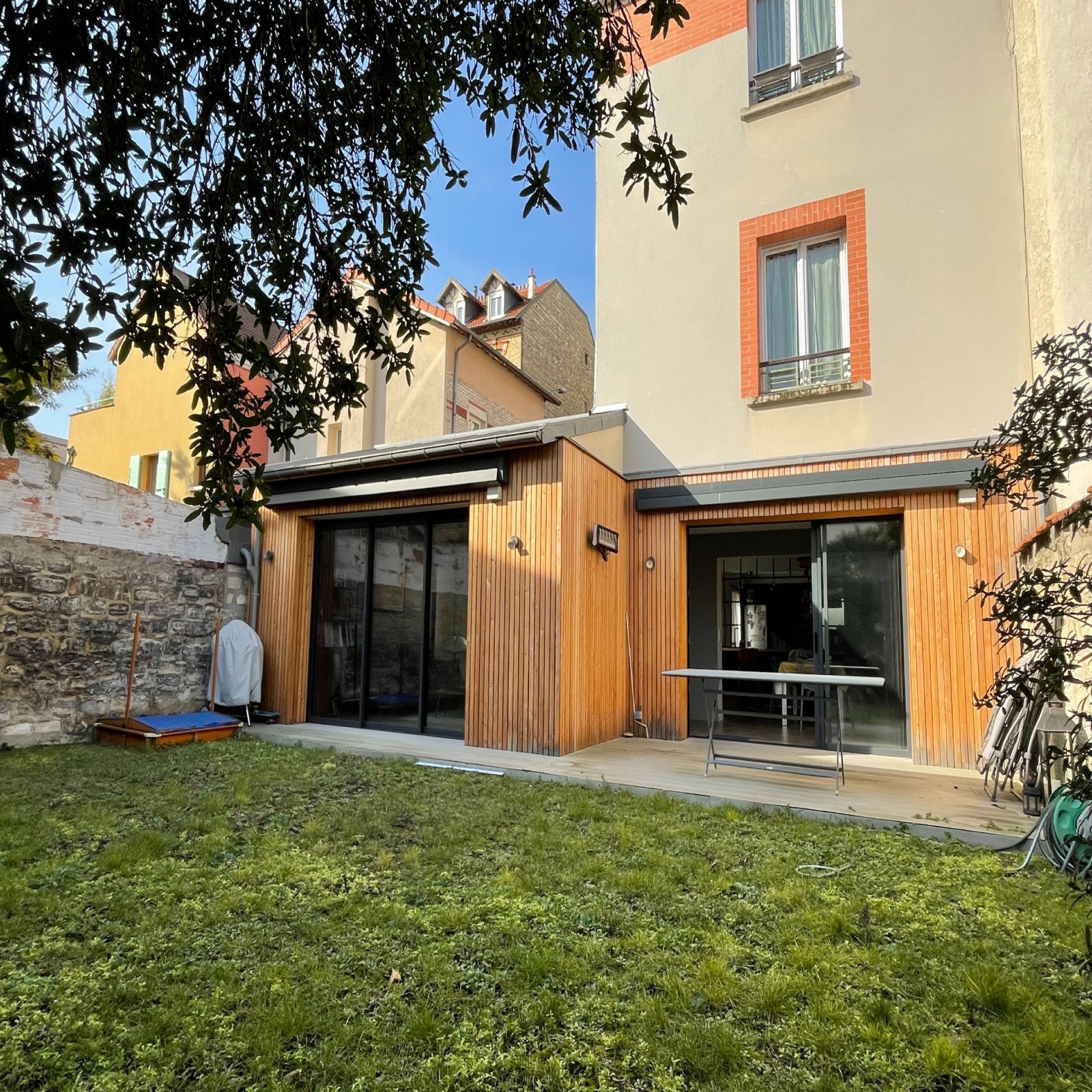 VENDUE. RARE. Idéalement située, proche toutes commodités, à proximité immédiate de la Place de la Liberté, de la rue Voltaire et des transports, maison familiale de 180 m2 rénovée avec de beaux matériaux en 2019. Au rez-de-chaussée, la spacieuse entrée ouvre sur une pièce de vie de 60 m2, composée d'une cuisine semi-ouverte sur l'espace réception. L'ensemble donne de plain-pied sur une terrasse et le jardin orienté plein Sud, au calme et sans vis-à-vis. Au 1er étage, un palier avec placards distribue 2 chambres spacieuses, une salle de bains/douche, un wc. Au 2 ème étage, 3 belles chambres, une salle de bains avec wc. Chacune des 5 chambres dispose de grands placards. La cave offre encore de nombreux espaces de rangements, dont une cave à vin. La cour d'accueil permet de garer 2 voitures en enfilade, un abri-vélo complète le bien. L'emplacement privilégié au coeur de la Garenne-Colombes, les volumes, la luminosité et la décoration soignée font de cette maison un bien exceptionnel. Contact direct : O6.20.86.87.98