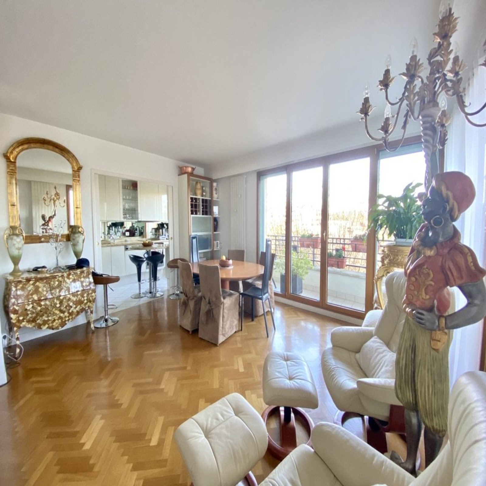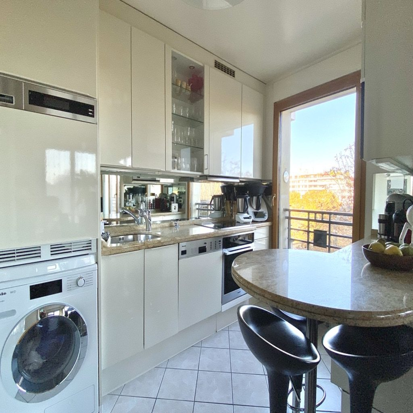 VENDU. Pont de Levallois. Au 4ème étage d'une résidence de grand standing de 2000 avec régisseur et jardin intérieur, magnifique appartement 4 P offrant de très belles prestations: Entrée, cuisine dinatoire de belle facture entièrement aménagée et équipée (Miele), ouvrant sur grand double séjour très lumineux avec balcon de 20 m2, bénéficiant d'une double exposition Est-Ouest avec vue Seine et la Défense. 3 chambres possibles dont une suite parentale de 16 m2 avec 2 dressings aménagés et sa salle de bains balnéothérapie attenante, salle d'eau , 2WC. Une belle cave avec rangements et 2 parkings en sous-sol complètent le bien. L'excellent état général et les prestations haut de gamme en font un produit rare. Le bien vise une copropriété de 172 lots principaux, charges annuelles de 5340 € eau, chauffage et gardien compris, aucune procédure en cours. Contact direct: O6.61.57.40.88.