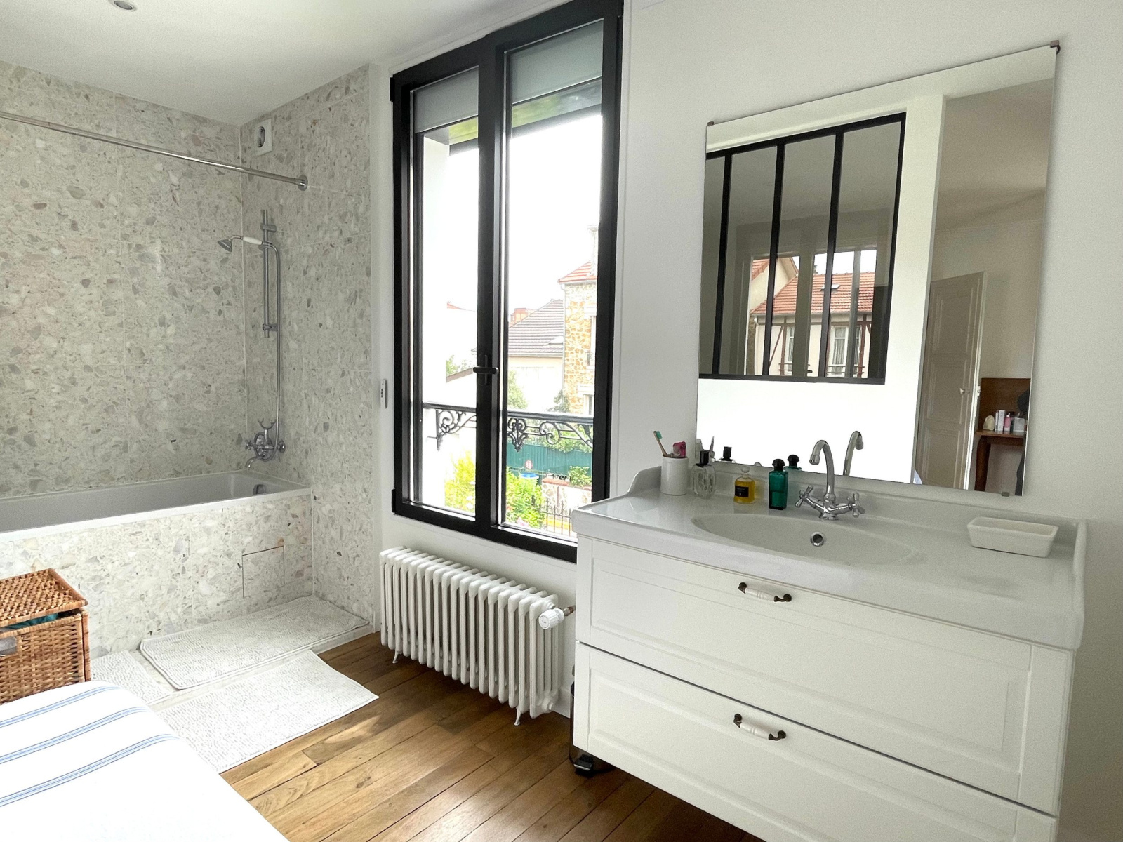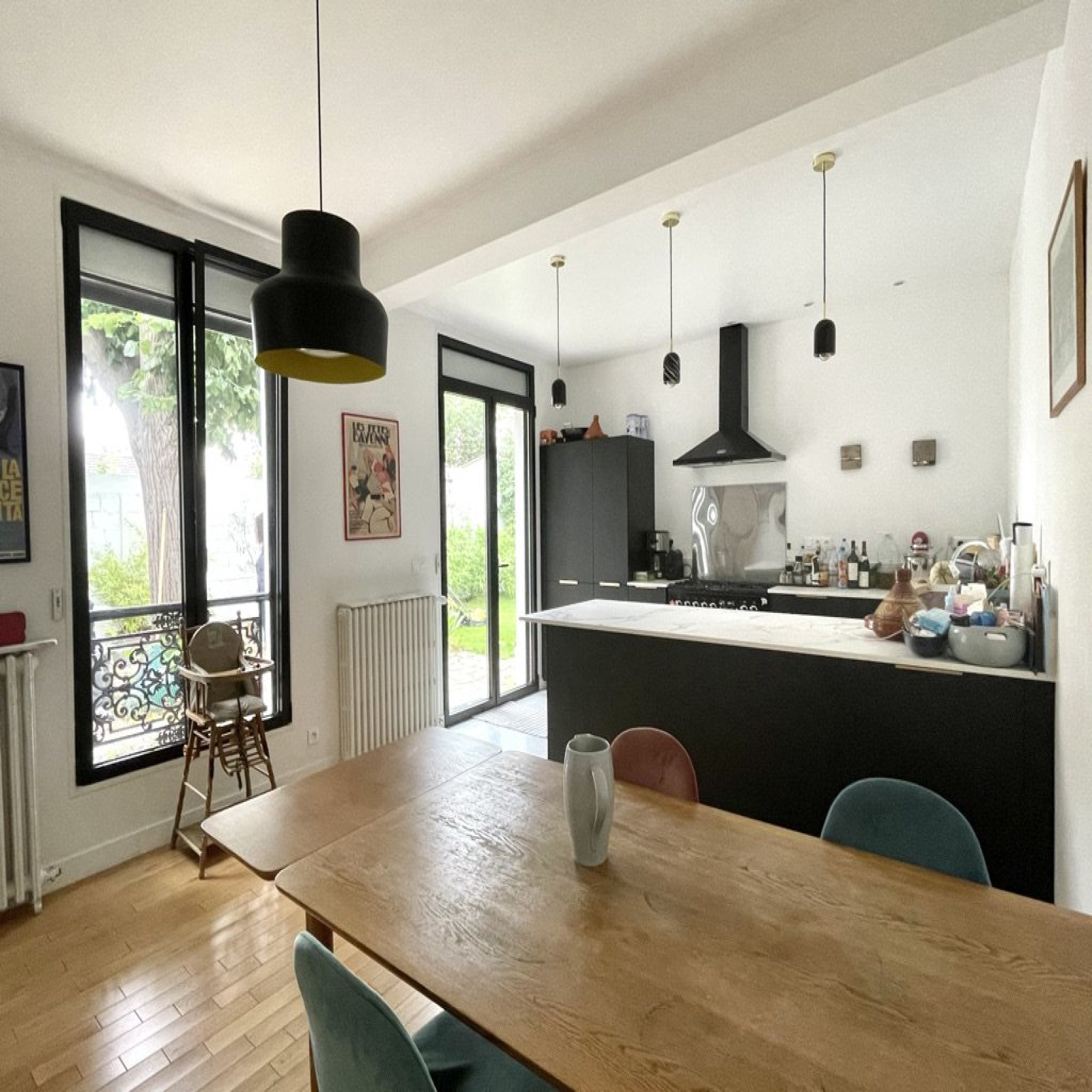 VENDUE. BEL-AIR. A 8 mn des gares de Colombes et Bois-Colombes, à 3 mn des commerces, au calme, cette très belle maison fin 19ème rénovée entièrement en 2019 de 123 m2 et édifiée sur un terrain de 305 m2 avec plusieurs espaces de vie d?extérieur vous charmera par son rdc entièrement de plain-pied, composé d?un salon avec cheminée, d?une très grande cuisine dinatoire, wc. Au 1er, 3 chambres dont une suite parentale avec sa salle de bains, une salle d?eau et wc. Au second, des combles aménagées en chambre et rangements. Grenier. Un sous-sol avec buanderie et rangement complètent ce bien. Portail automatique, Volets roulants, Chaudière Viessmann de 2 ans. Aucun travaux à prévoir. Parking intérieur et extérieur. SON POTENTIEL : Une extension par le haut peut être envisagée, de 50 m2, tous les réseaux sont déjà installés, pour bénéficier au second de 2 chambres non mansardées et d?une pièce d?eau. COUP DE COEUR assuré ! Contact : Véronique de Lima, vdelima@homeandco.fr