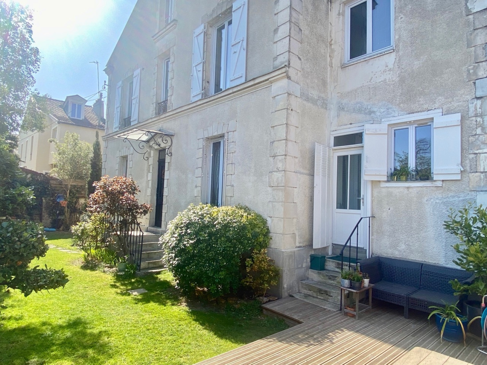VENDUE. RARE. Idéalement située, à 7 mn à pieds de la gare de Bois-Colombes et des commerces, dans un écrin de verdure, nichée au fond d'une petite allée privée, très jolie maison non mitoyenne aux allures de maison de campagne, d'environ 130 m2 sur un terrain de 225 m2. Au rdc : un salon, une salle à manger et une cuisine séparée avec un accès direct à la terrasse à l'abri des regards. Au 1er étage : une grande suite parentale avec salle de bain et dressing, une chambre, une salle d'eau avec wc. Au 2ème étage : une chambre, un espace bureau pouvant être transformé en 4ème chambre, un wc. En entresol, une pièce pouvant faire office de salle de jeux/TV/bureau ou chambre d'appoint, une buanderie et un atelier. Possibilité de location de box à 50 m. L'absence de vis à vis, le calme, le charme et l'emplacement de cette maison en font un bien coup de coeur.