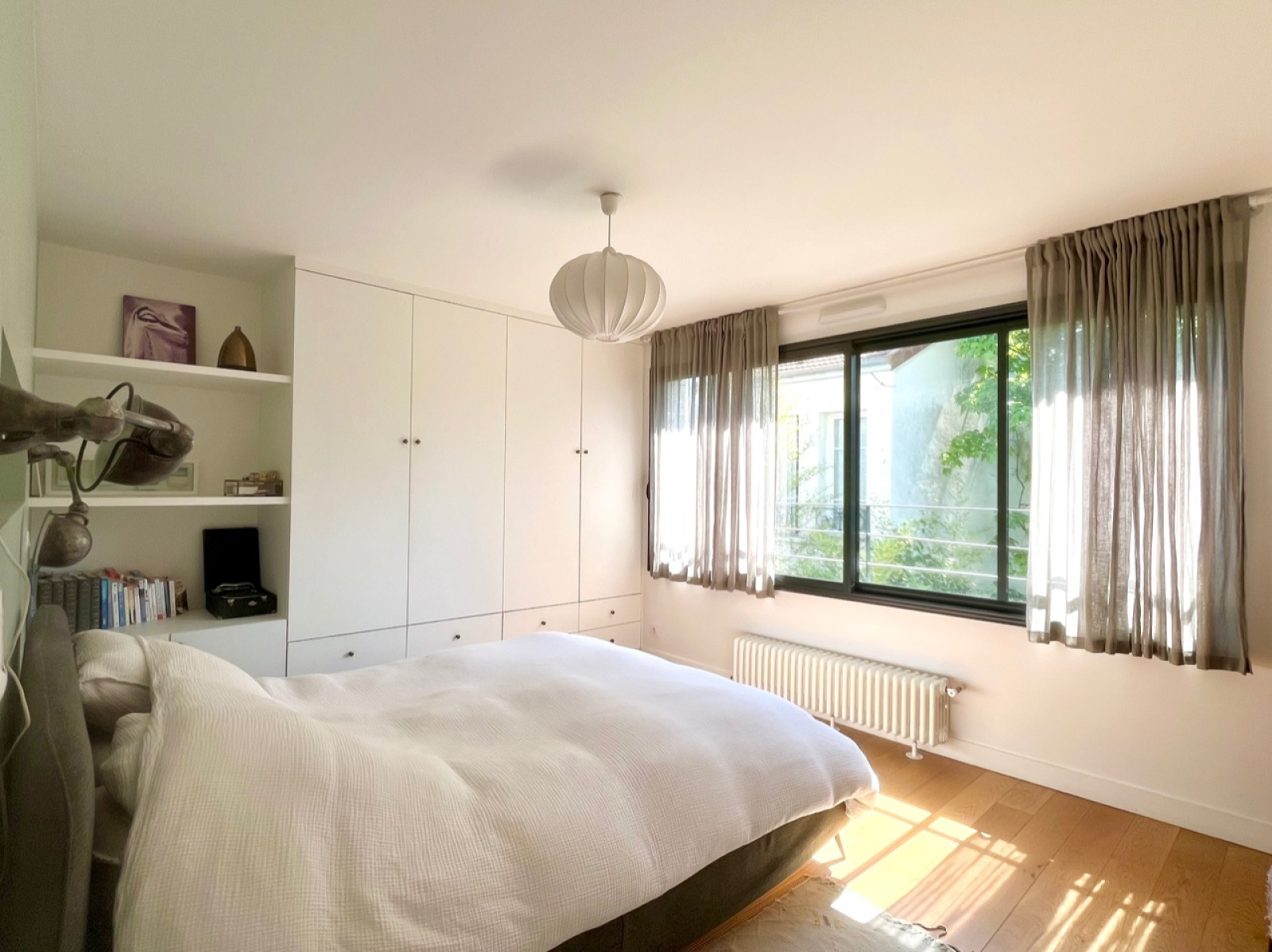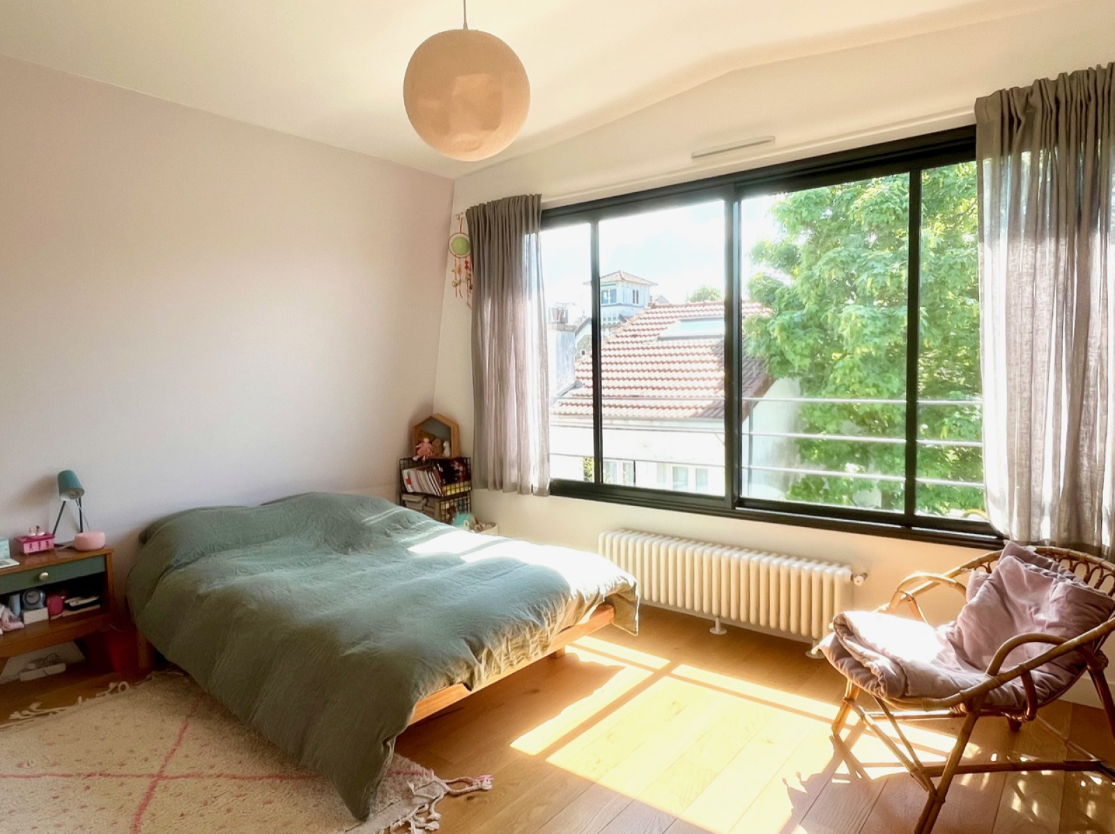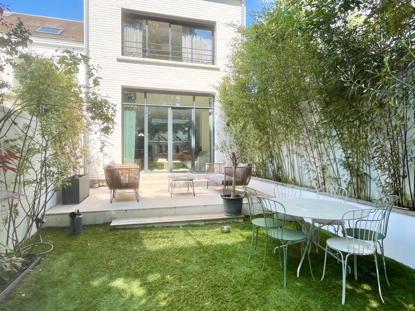 RARE. A proximité de la gare de Bois-Colombes, dans une jolie rue pavillonaire, magnifique maison familiale de type Mansart (160 m2) non mitoyenne construite en 2021 avec des prestations de qualités (parquet massif, béton ciré, ballon thermodynamique, menuiseries sur mesure...). Lumineuse, au calme et sans vis-à-vis, cette maison propose au rez-de-chaussée, une entrée avec rangements, un wc invités et une très belle pièce de vie (47 m2) composée d'un espace salle à manger avec cuisine ouverte et d'un salon avec cheminée donnant de plain-pied sur la terrasse et un joli jardin exposé sud. Au 1er étage : deux belles chambres avec placards, une salle d'eau et un wc indépendant. Au 2ème étage : Deux autres chambres avec placards, une salle de bain avec un wc. Un sous-sol total avec une grande buanderie/pièce de rangements, un garage et un espace pour les vélos. Une dépendance au fond jardin avec chambre et salle d'eau, complète le bien. Aucun travaux à prévoir. Sectorisation scolaire Saint Exupéry et Mermoz. L'emplacement privilégié, les beaux volumes et la décoration soignée de cette maison en font un véritable bien coup de coeur ! Votre contact : Caroline Langellier (EI) Agent commercial inscrite au RSAC de Nanterre sous le numéro 829 072 016, joignable au 06.64.19.41.82.