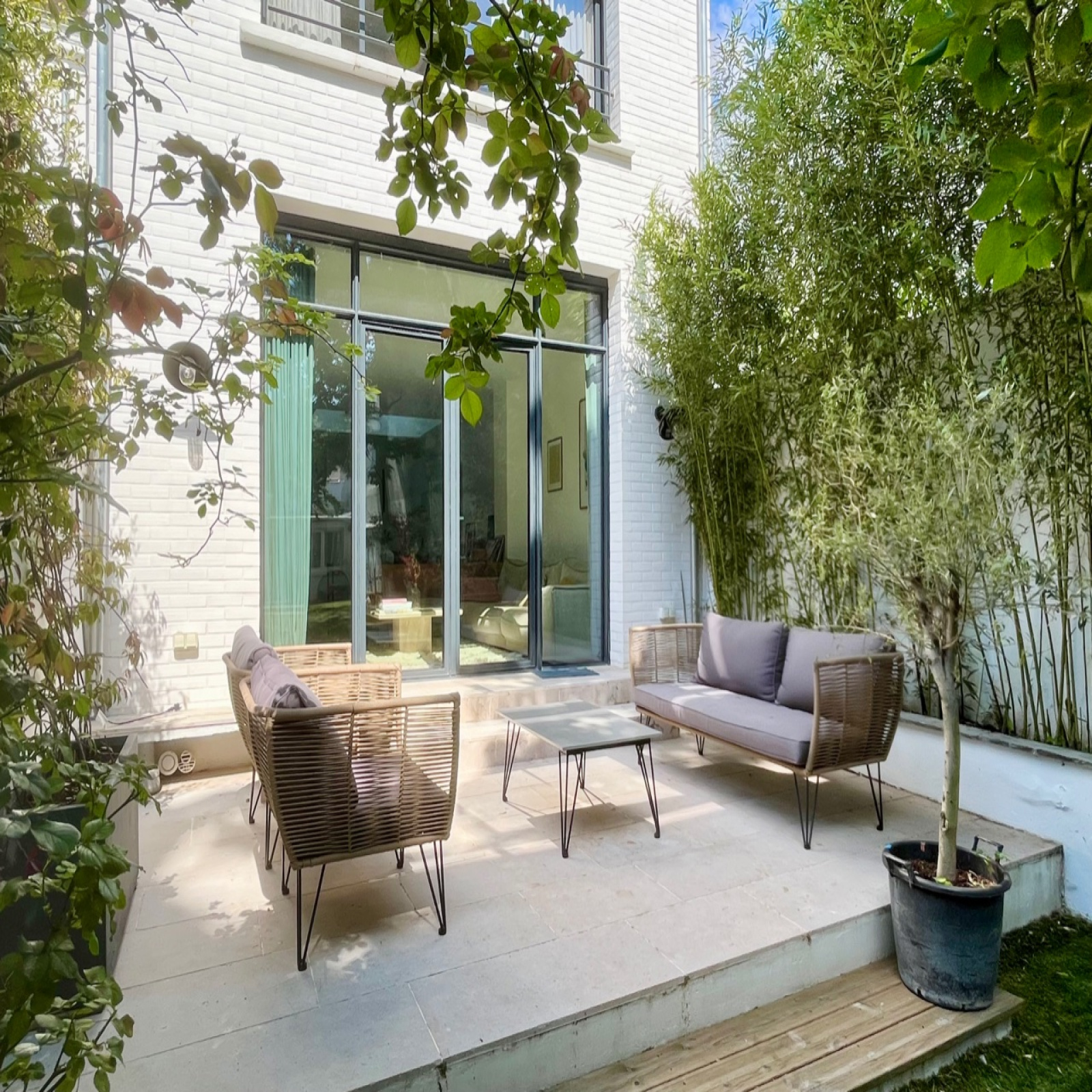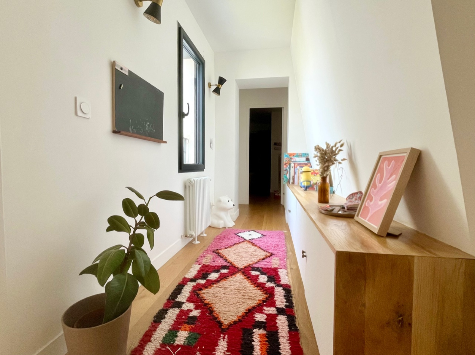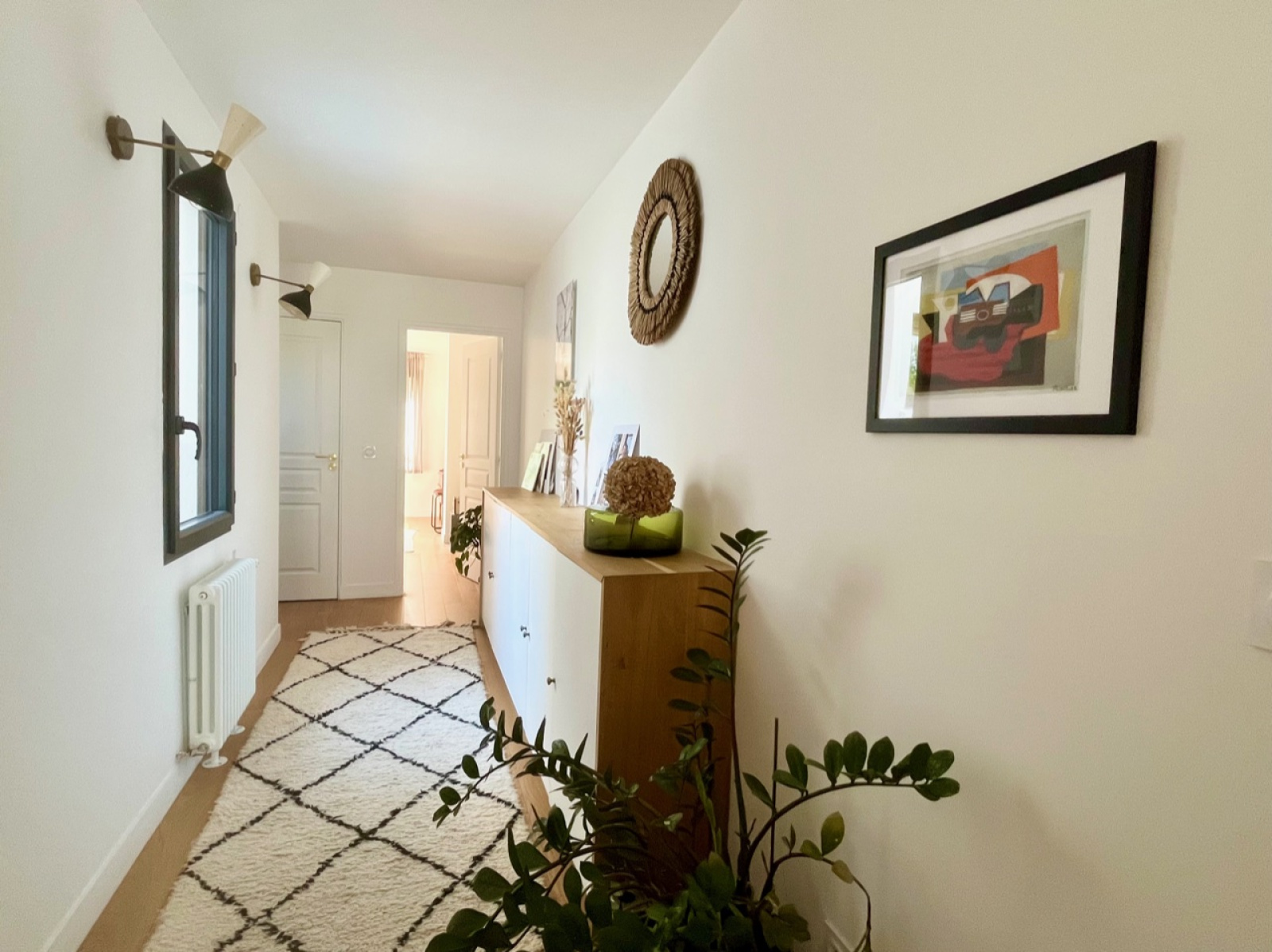 RARE. A proximité de la gare de Bois-Colombes, dans une jolie rue pavillonaire, magnifique maison familiale de type Mansart (160 m2) non mitoyenne construite en 2021 avec des prestations de qualités (parquet massif, béton ciré, ballon thermodynamique, menuiseries sur mesure...). Lumineuse, au calme et sans vis-à-vis, cette maison propose au rez-de-chaussée, une entrée avec rangements, un wc invités et une très belle pièce de vie (47 m2) composée d'un espace salle à manger avec cuisine ouverte et d'un salon avec cheminée donnant de plain-pied sur la terrasse et un joli jardin exposé sud. Au 1er étage : deux belles chambres avec placards, une salle d'eau et un wc indépendant. Au 2ème étage : Deux autres chambres avec placards, une salle de bain avec un wc. Un sous-sol total avec une grande buanderie/pièce de rangements, un garage et un espace pour les vélos. Une dépendance au fond jardin avec chambre et salle d'eau, complète le bien. Aucun travaux à prévoir. Sectorisation scolaire Saint Exupéry et Mermoz. L'emplacement privilégié, les beaux volumes et la décoration soignée de cette maison en font un véritable bien coup de coeur ! Votre contact : Caroline Langellier (EI) Agent commercial inscrite au RSAC de Nanterre sous le numéro 829 072 016, joignable au 06.64.19.41.82.